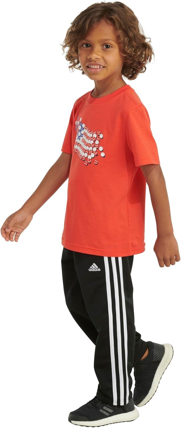 adidas baby-boys Short Sleeve Patriotic USA Flag Logo Tee(Scarlet Adi)