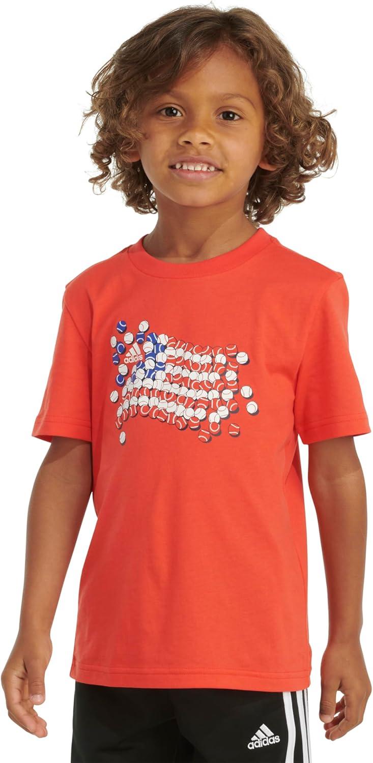 adidas baby-boys Short Sleeve Patriotic USA Flag Logo Tee(Bright Red)