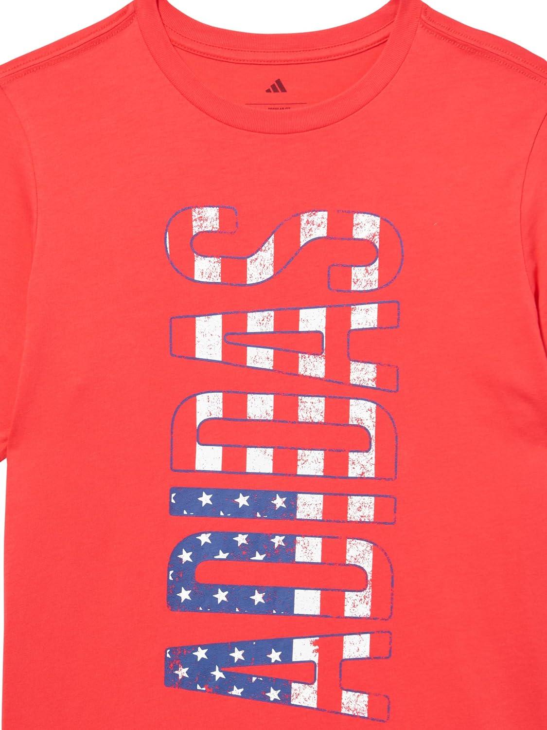 adidas baby-boys Short Sleeve Patriotic USA Flag Logo Tee(Ruby Red American)