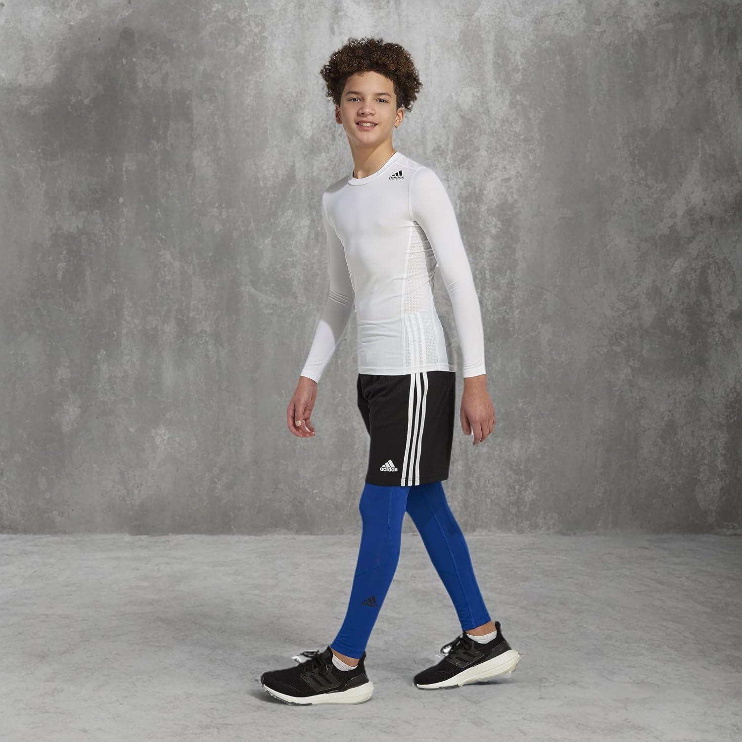 adidas Boys’ Aeroready® Techfit Compression Pants Tights(Bright Blue)