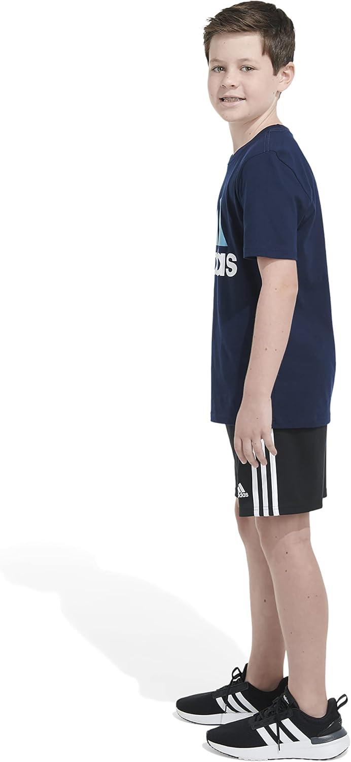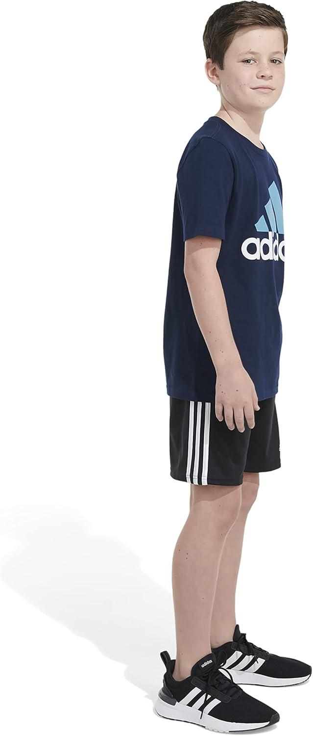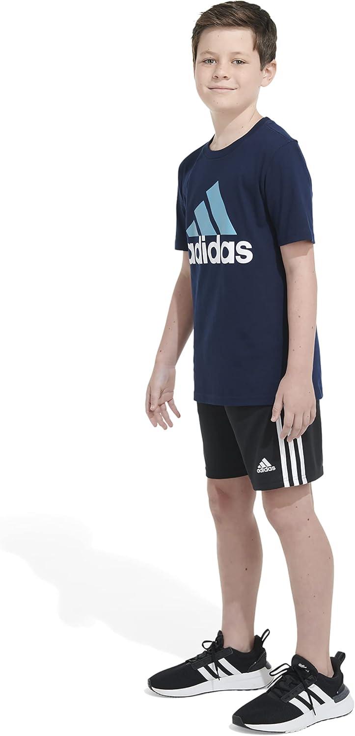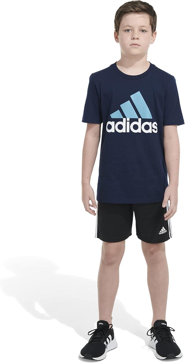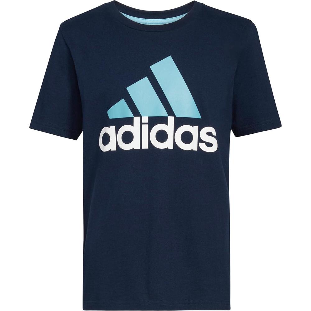 adidas Boys’ Big Short Sleeve Cotton Classic 2 Tone Bos Logo T-Shirt(Collegiate Navy)