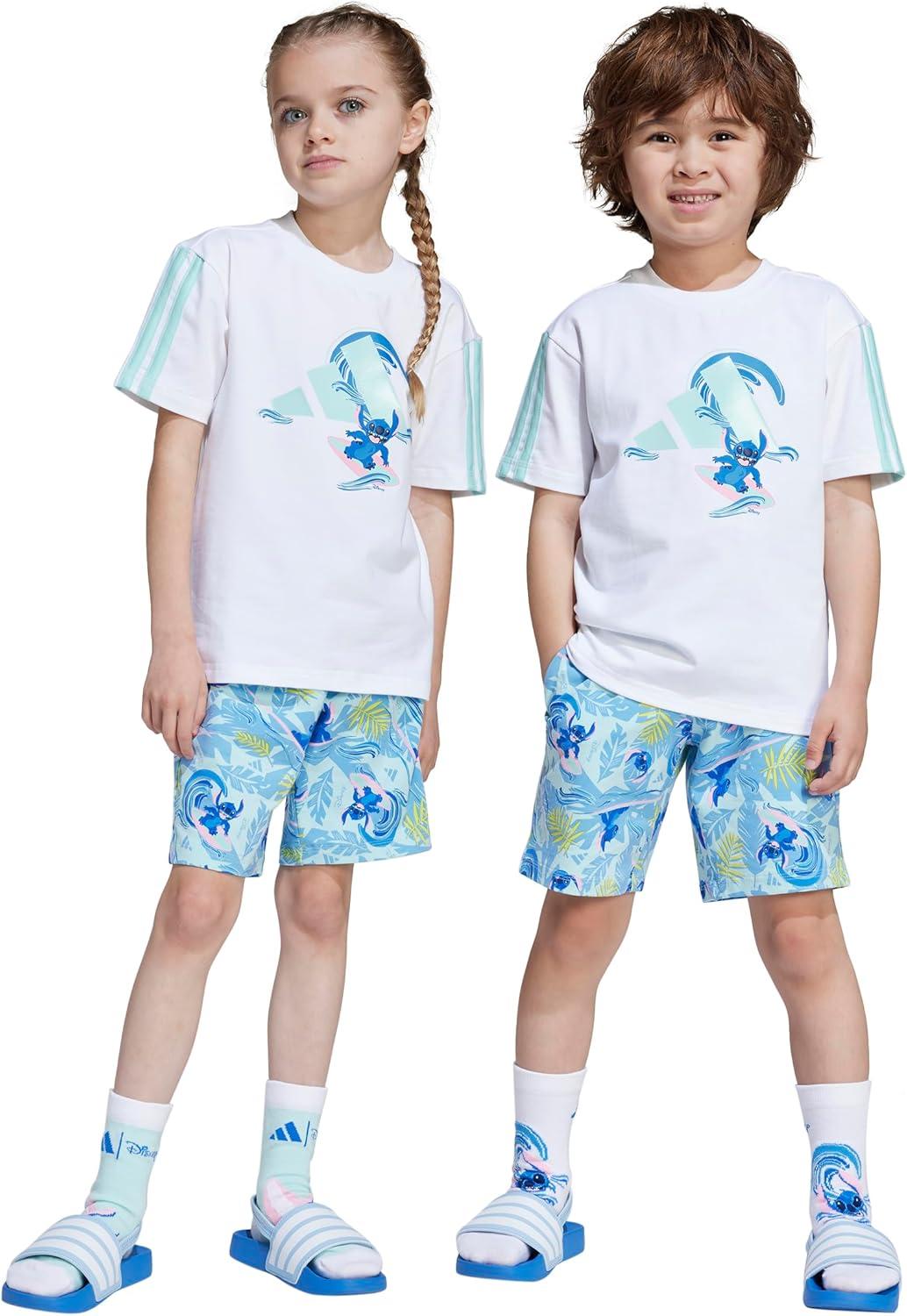 adidas boys Disney Lilo and Stitch T-shirt Set(White/Semi Flash Aqua)