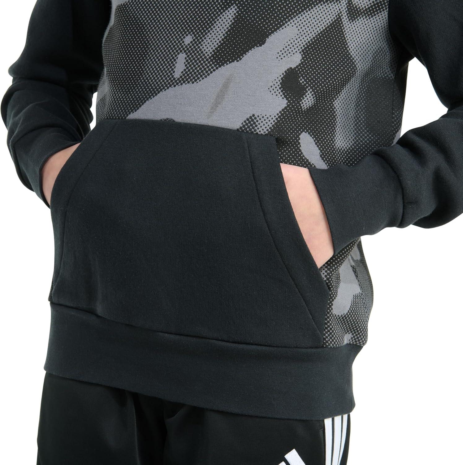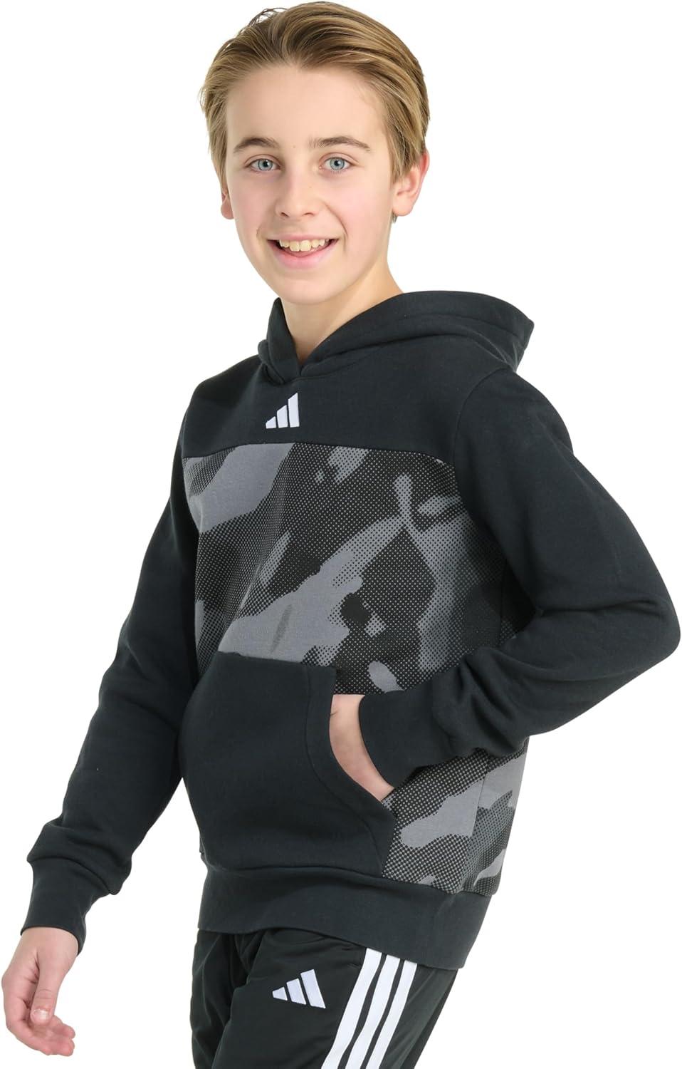 This Boys Logo Pullover Hooded Sweatshirt delivers everyday comfort with classic style. Made for school, play, and weekend wear, it features a soft fleece interior, ribbed cuffs and hem, and a front kangaroo pocket to keep hands warm. The bold logo design adds a sporty touch, while the regular fit strikes the right balance between relaxed and snug. Whether layered over a tee or worn on its own, this pullover hoodie is a versatile staple in any kid’s wardrobe. Key features include a pullover style with attached hood, soft cotton-blend or fleece fabric, ribbed cuffs and hem for shape retention, and a kangaroo pocket for convenience. This hoodie is machine washable and great for school, sports, casual wear, layering in cooler weather, or everyday activities.