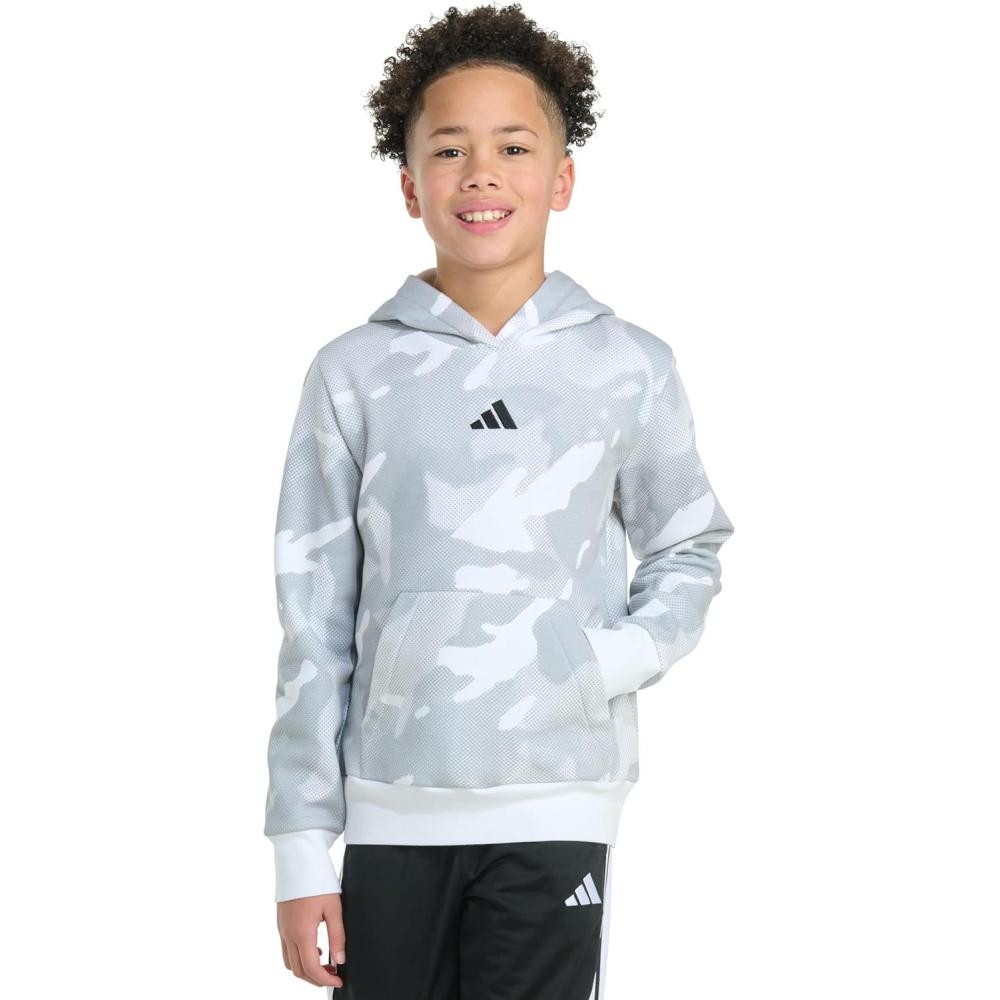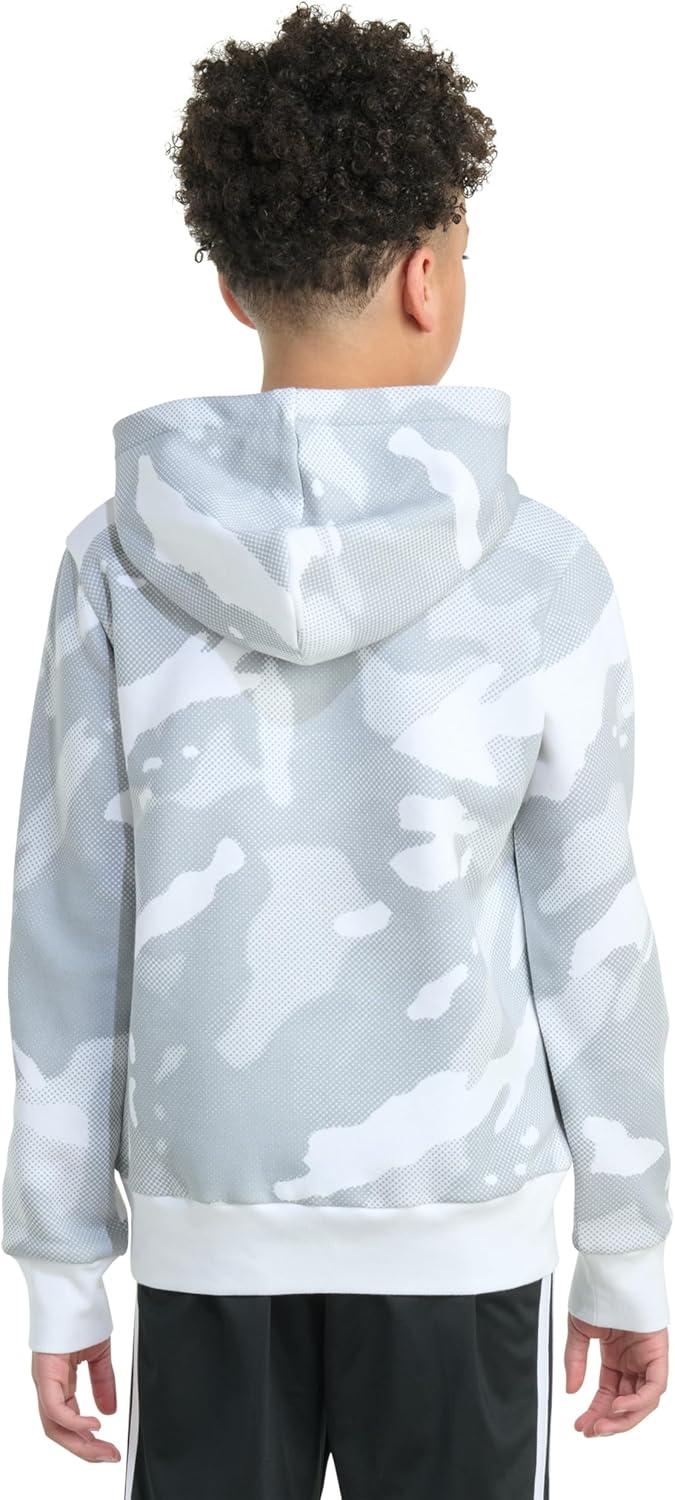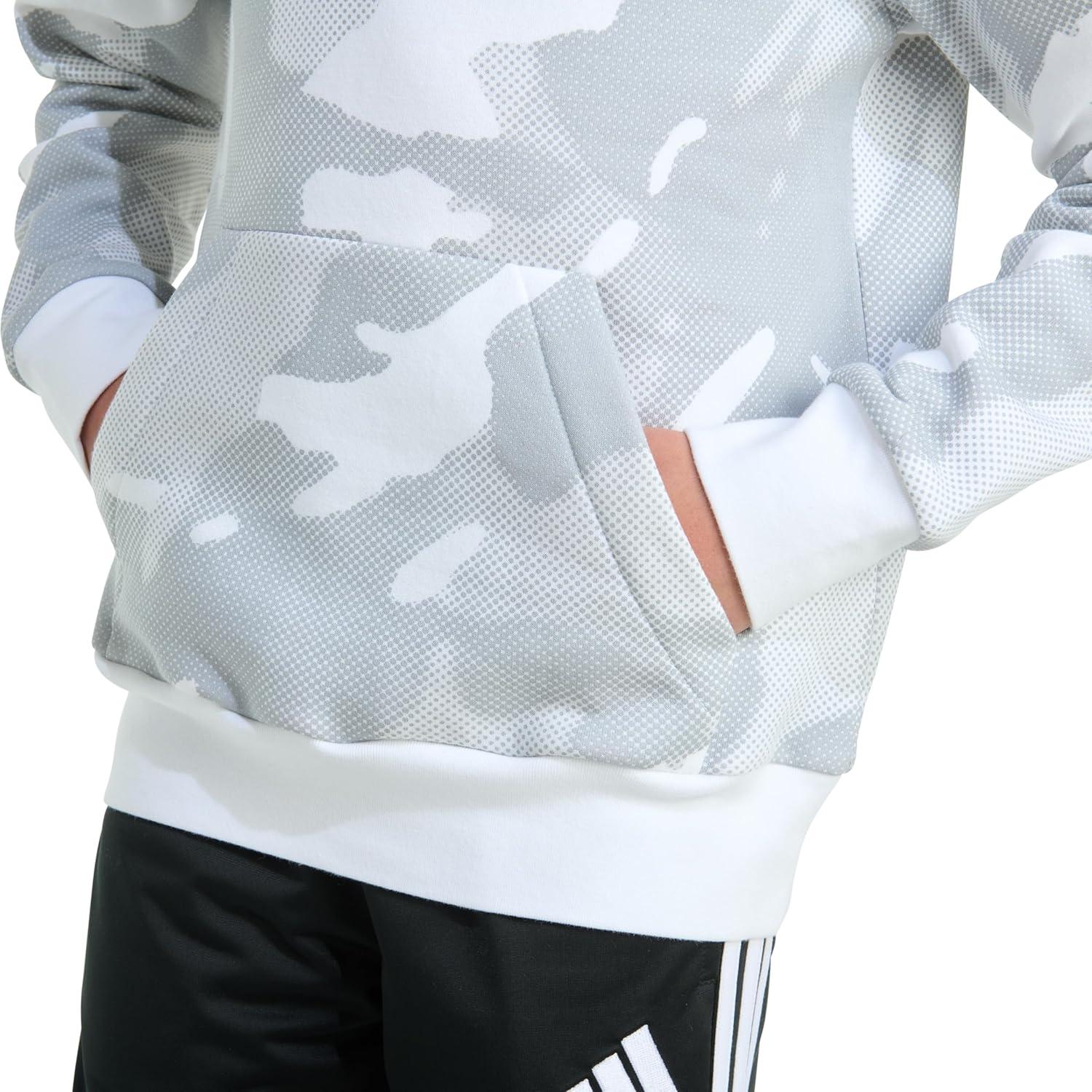 adidas Boys’ Long Sleeve Halftone Camo Printed Fleece Pullover Hoodie(White)