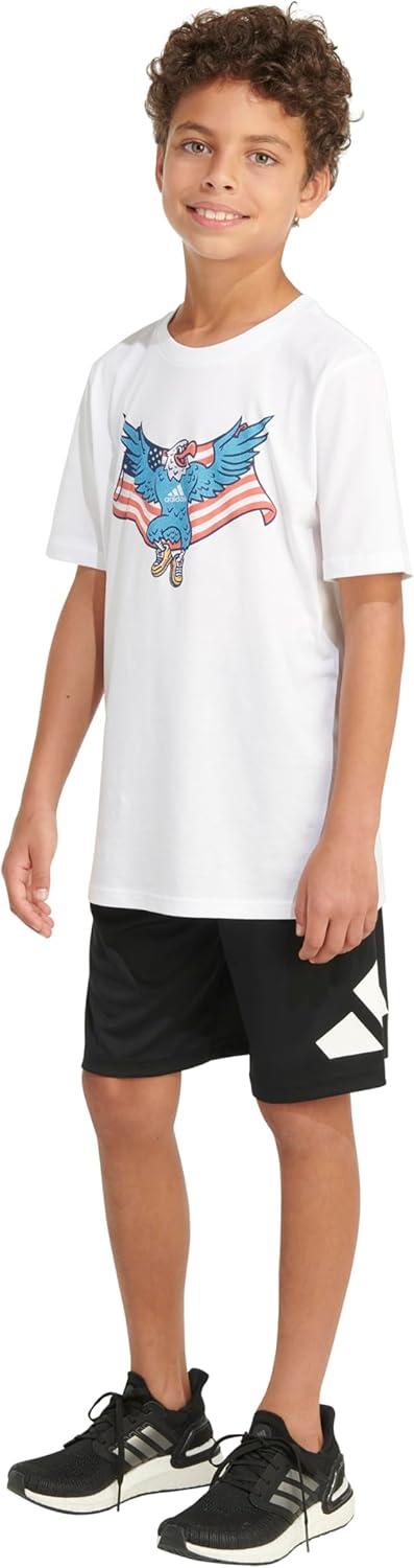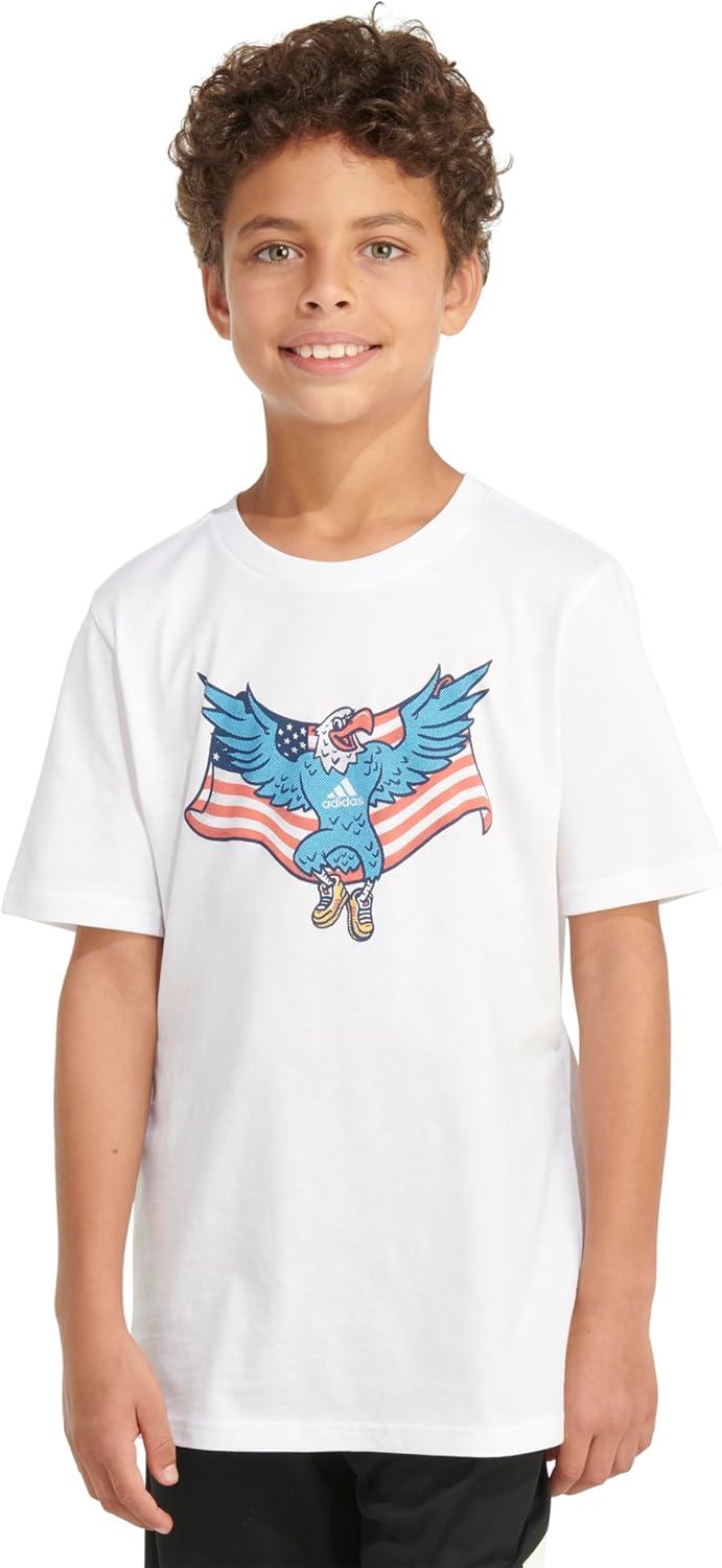 adidas Boys Short Sleeve Cotton USA Graphic T-Shirt(White Eagle)