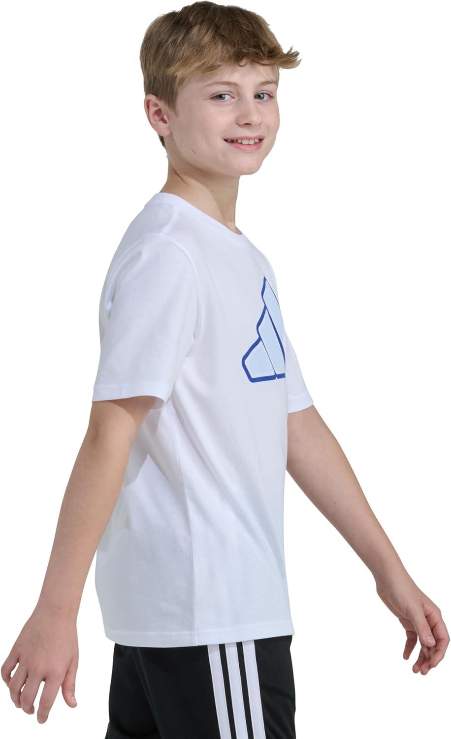 adidas Boys Short Sleeve Tiger Camo Bos Cotton Tee T Shirt(White With Blue)