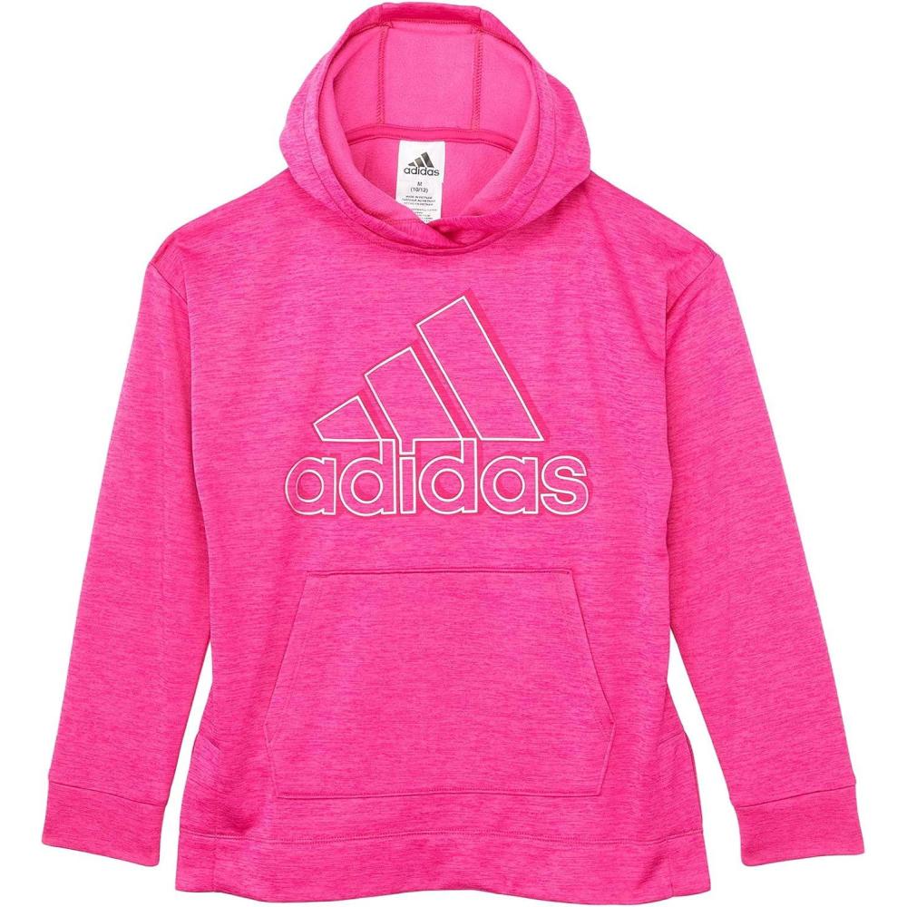 adidas Girls’ Badge of Sport Mélange Fleece Pullover Hoodie(Real Magenta Heather)