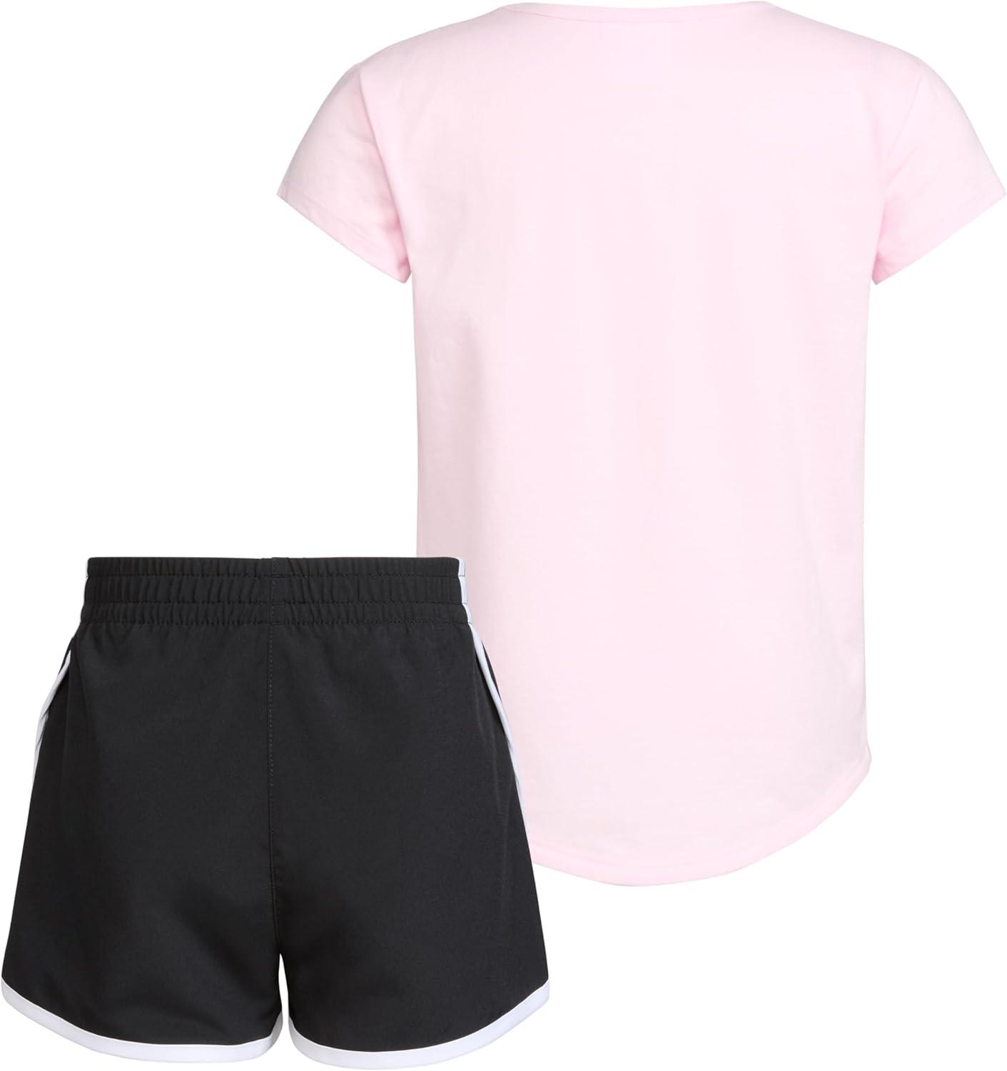 adidas girls Graphic Tee & Gym Shorts T-shirt Set(Light Pink & Black)