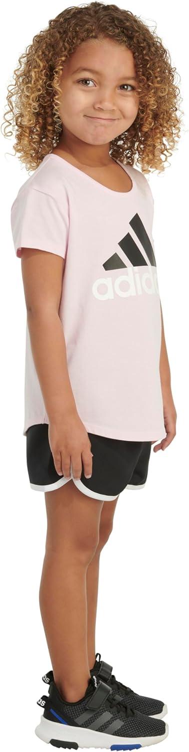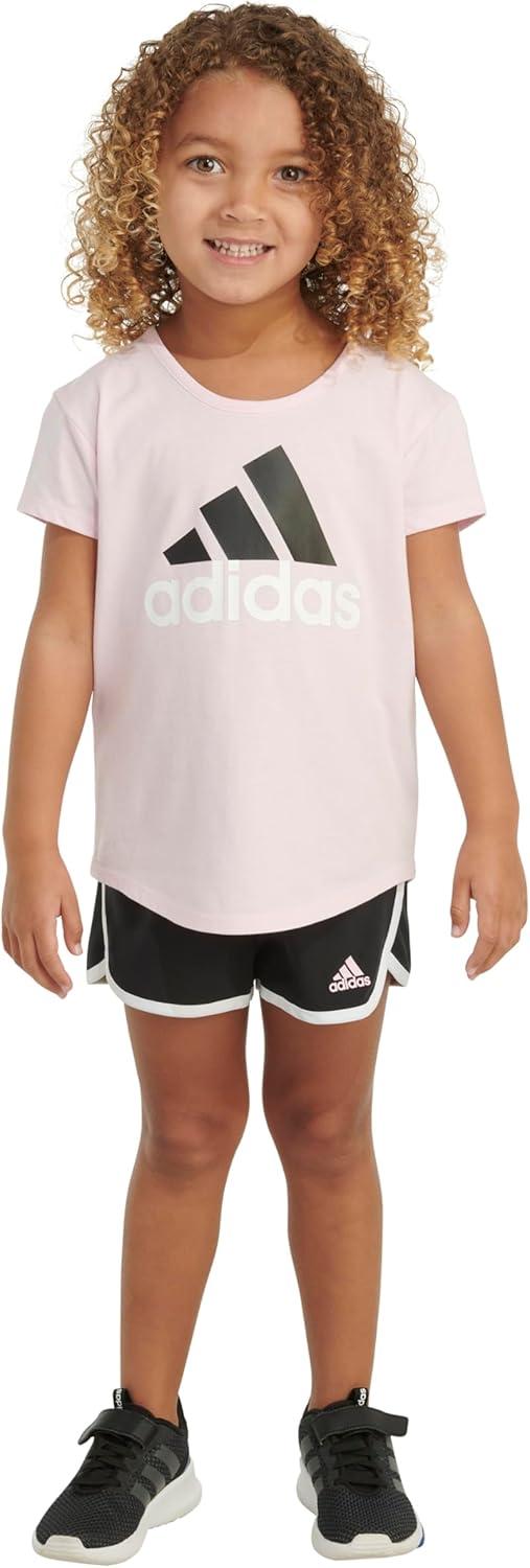 adidas girls Graphic Tee & Gym Shorts T-shirt Set(Med Pink 1)