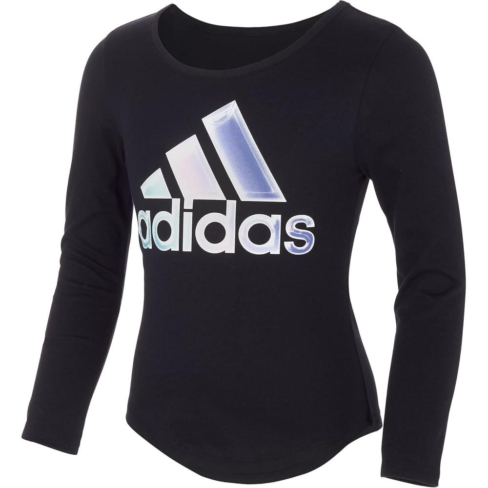 This girls' long sleeve tee is perfect for her everyday sporty look. A great big adidas Badge of Sport shows off her love for the legendary brand. Made to be tossed in the washing machine, the all-cotton t-shirt is super easy to care for.