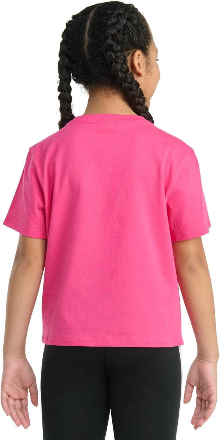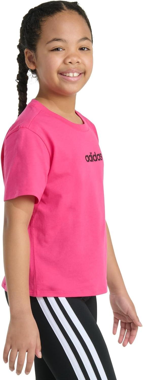 Comfortable to wear and simple to mix and match, this kids' adidas t-shirt for girls is all about ease. The soft all-cotton fabric has a regular cut. An embroidered “adidas” graphic in front shows 3-Stripes pride.