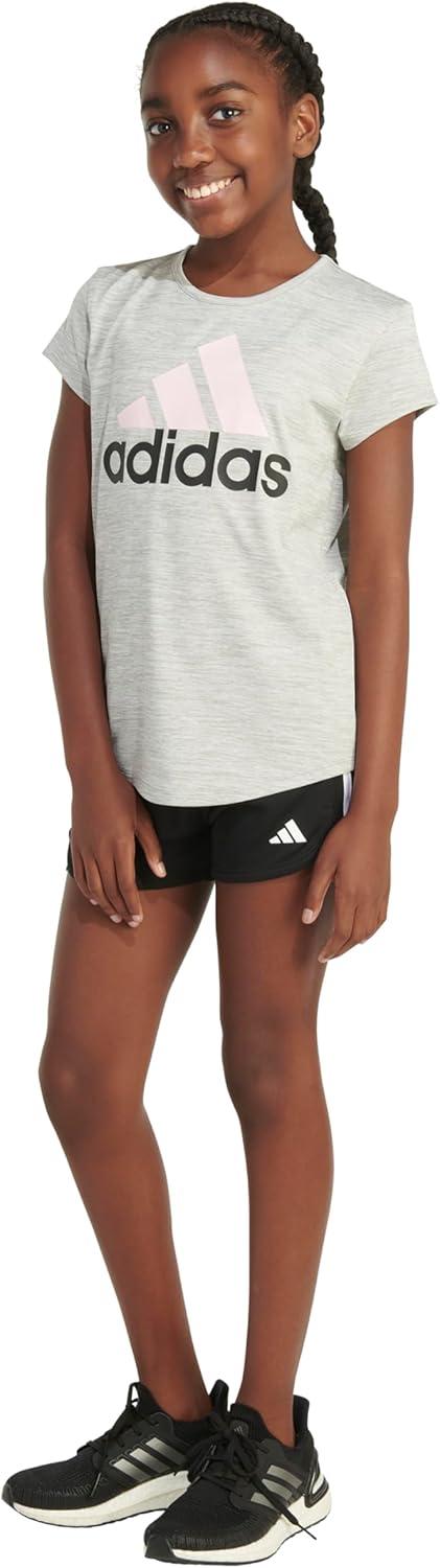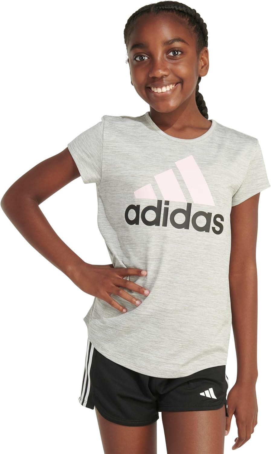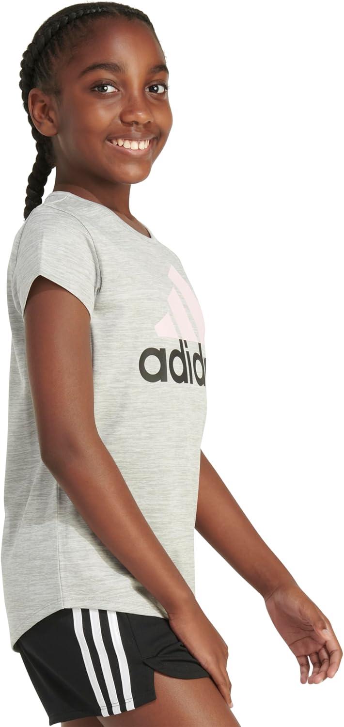 adidas Girls' Short Sleeve Scoop Neck Tee T-Shirt(Grey Heather With Pink)