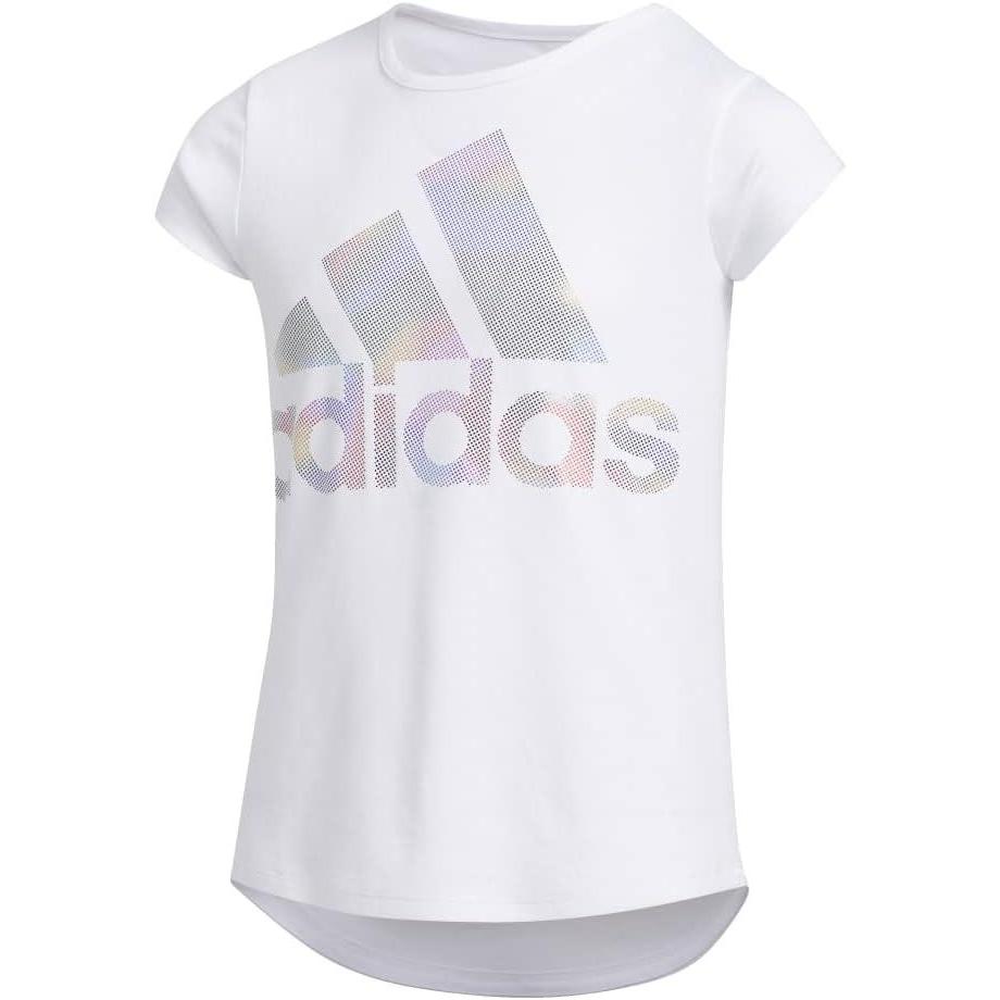 adidas Girls' Short Sleeve Scoop Neck Tee T-Shirt(White)
