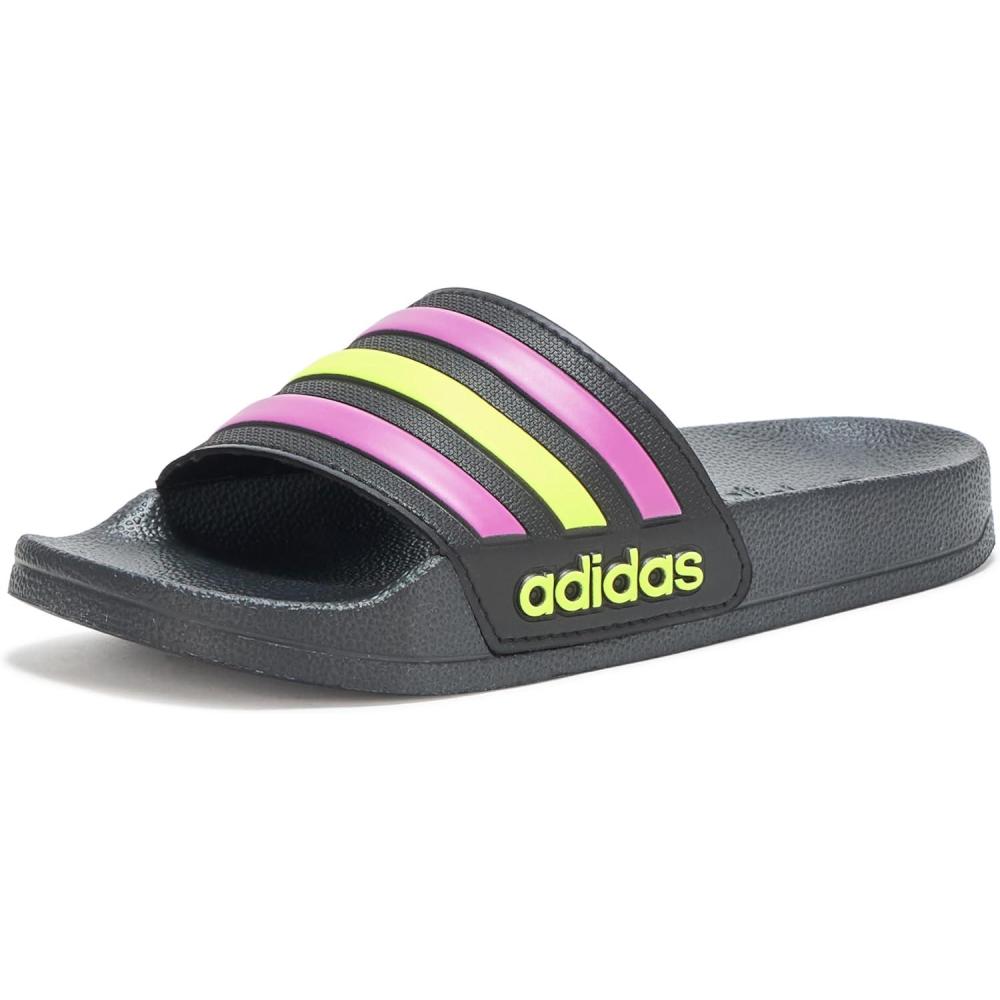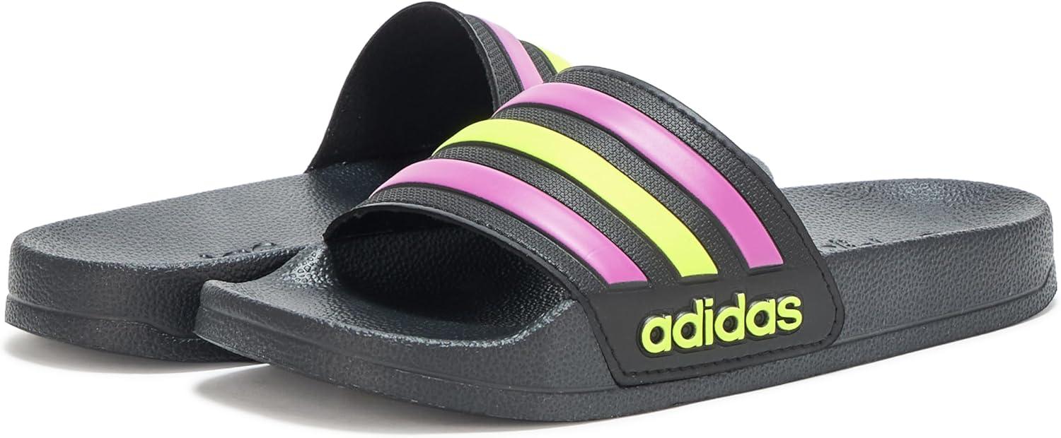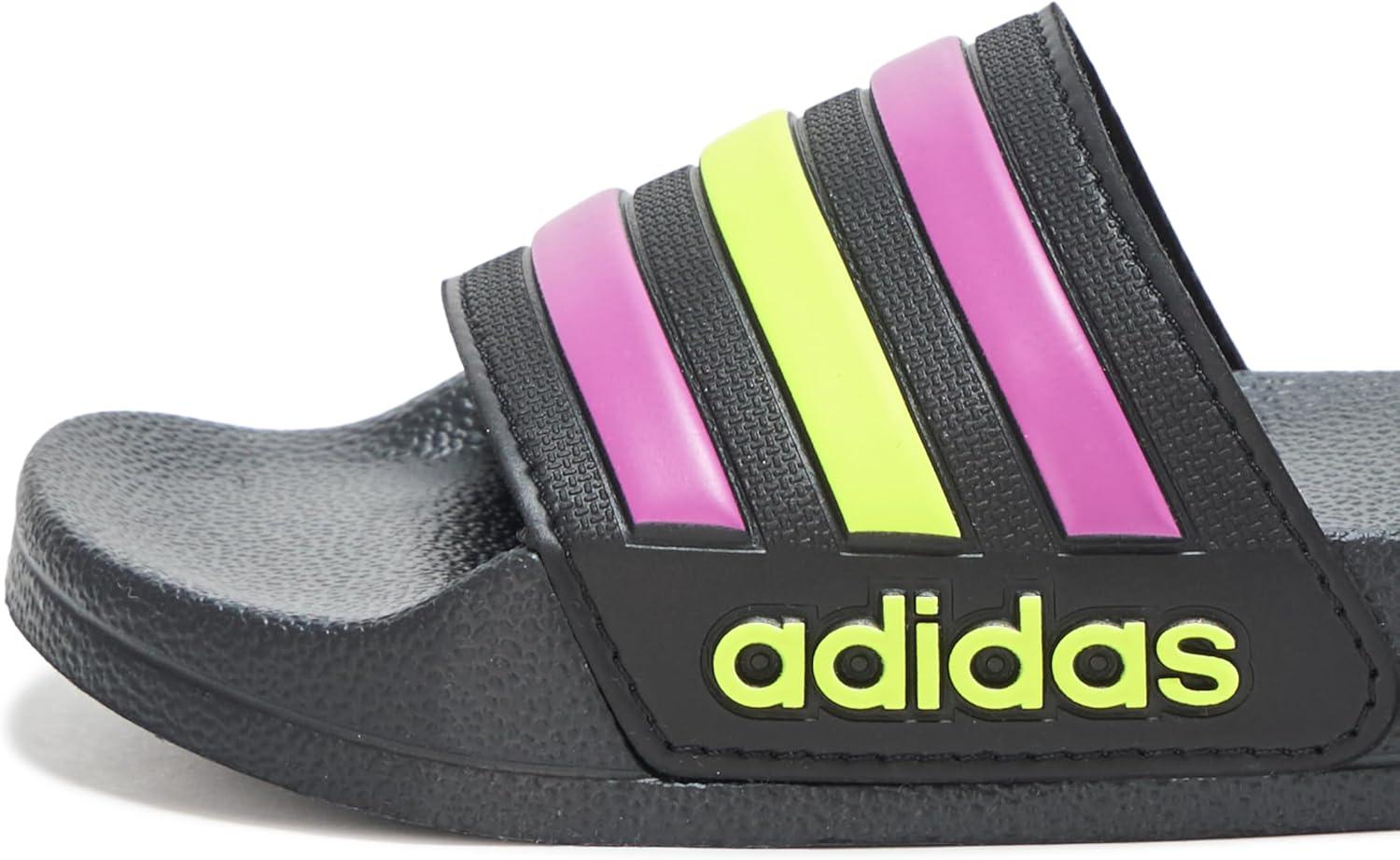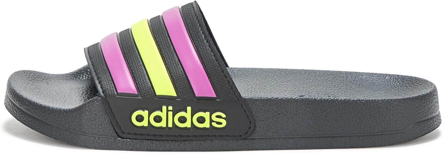 adidas Kids’ Adilette Shower Slide(Black/Flash Pink/Solar Yellow)