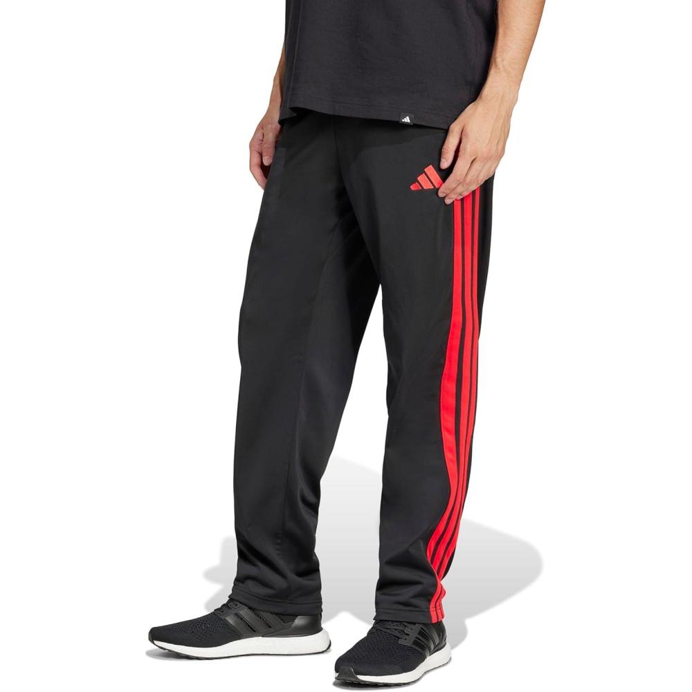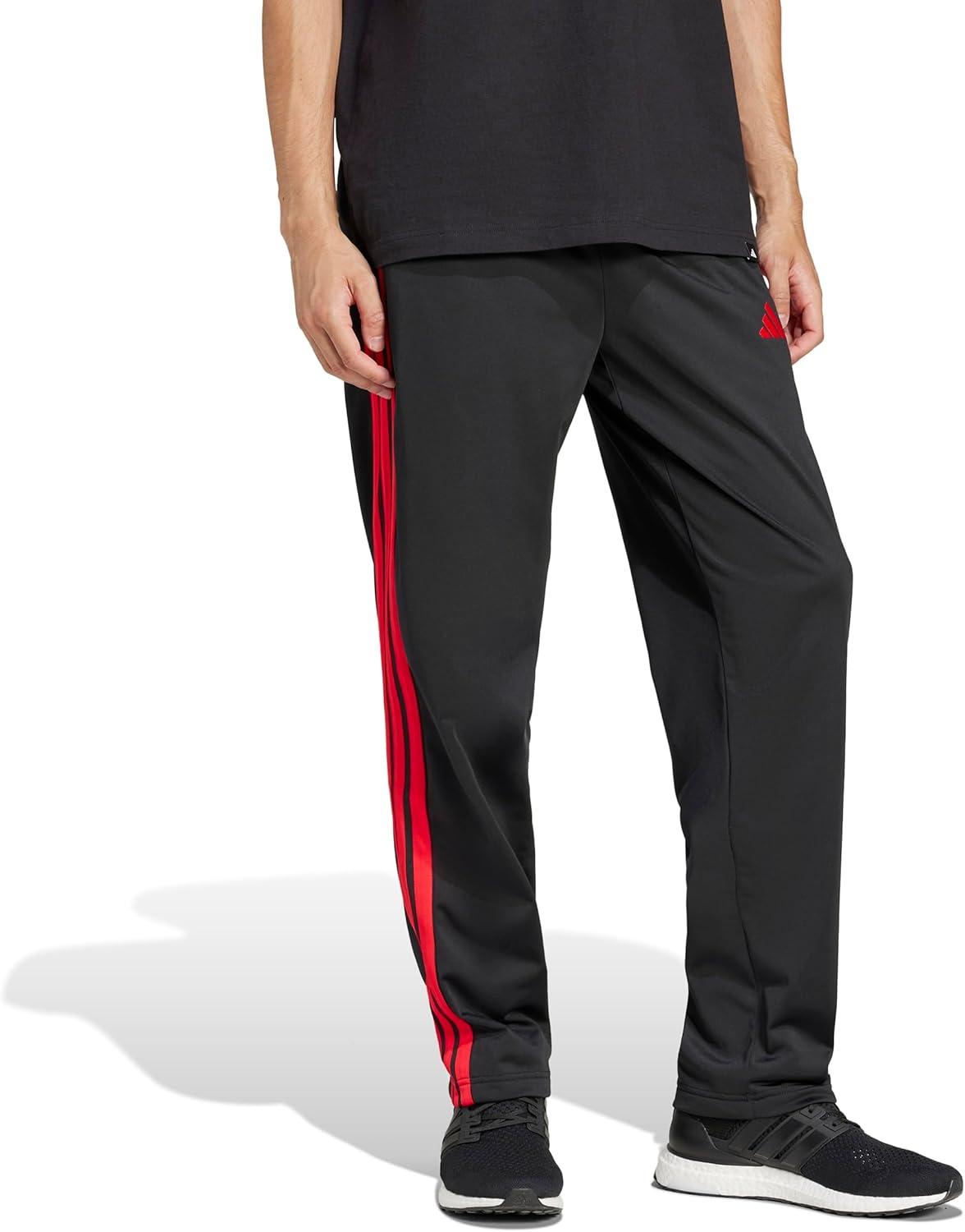 Adidas Mens 3-Stripes Tricot Open Hem Track Pants(Black/Pure Ruby)