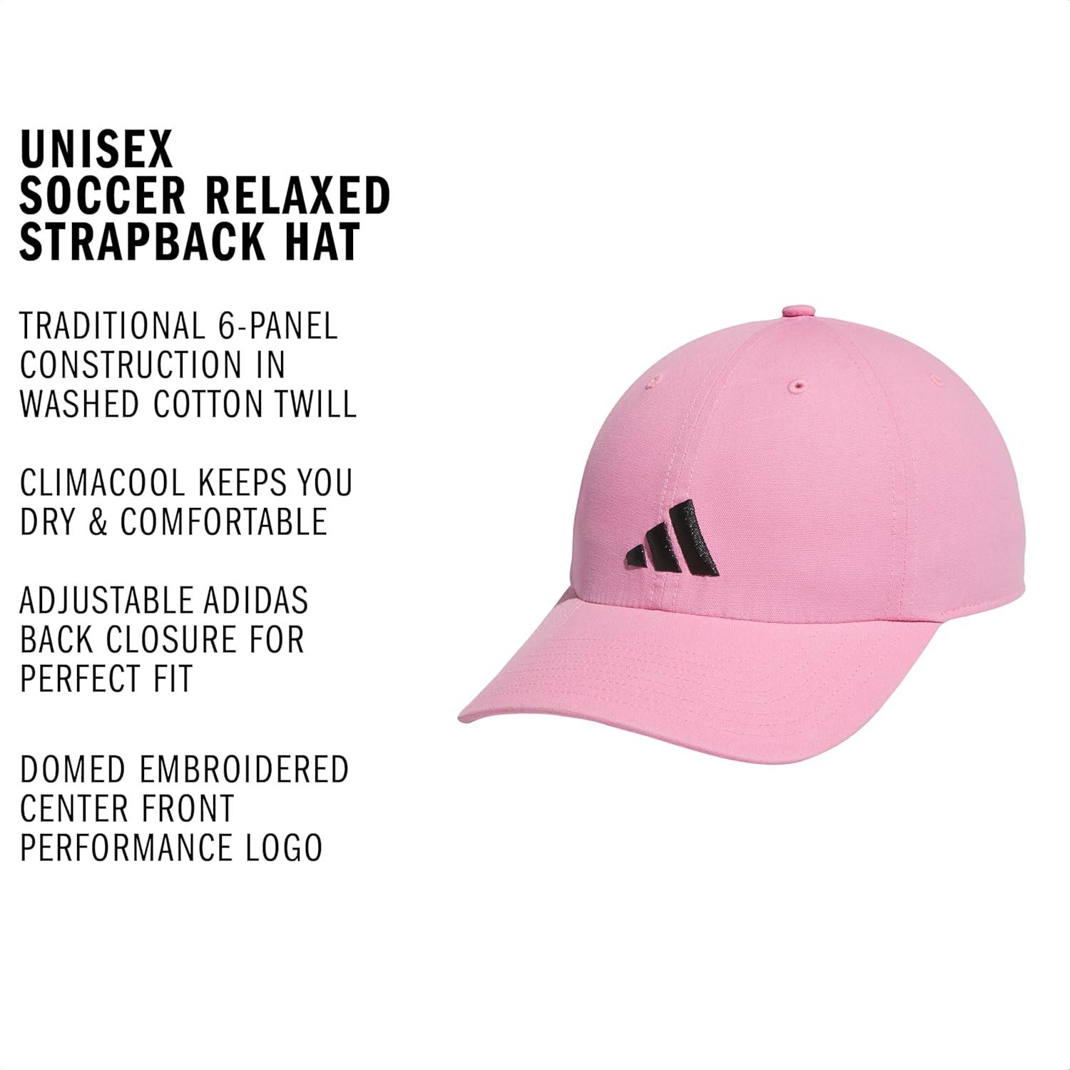 Adidas Mens Baseball Cap – Ultimate Adjustable Strapback Hat, Relaxed Fit, Cotton(Bliss Pink/Black/Soccer)