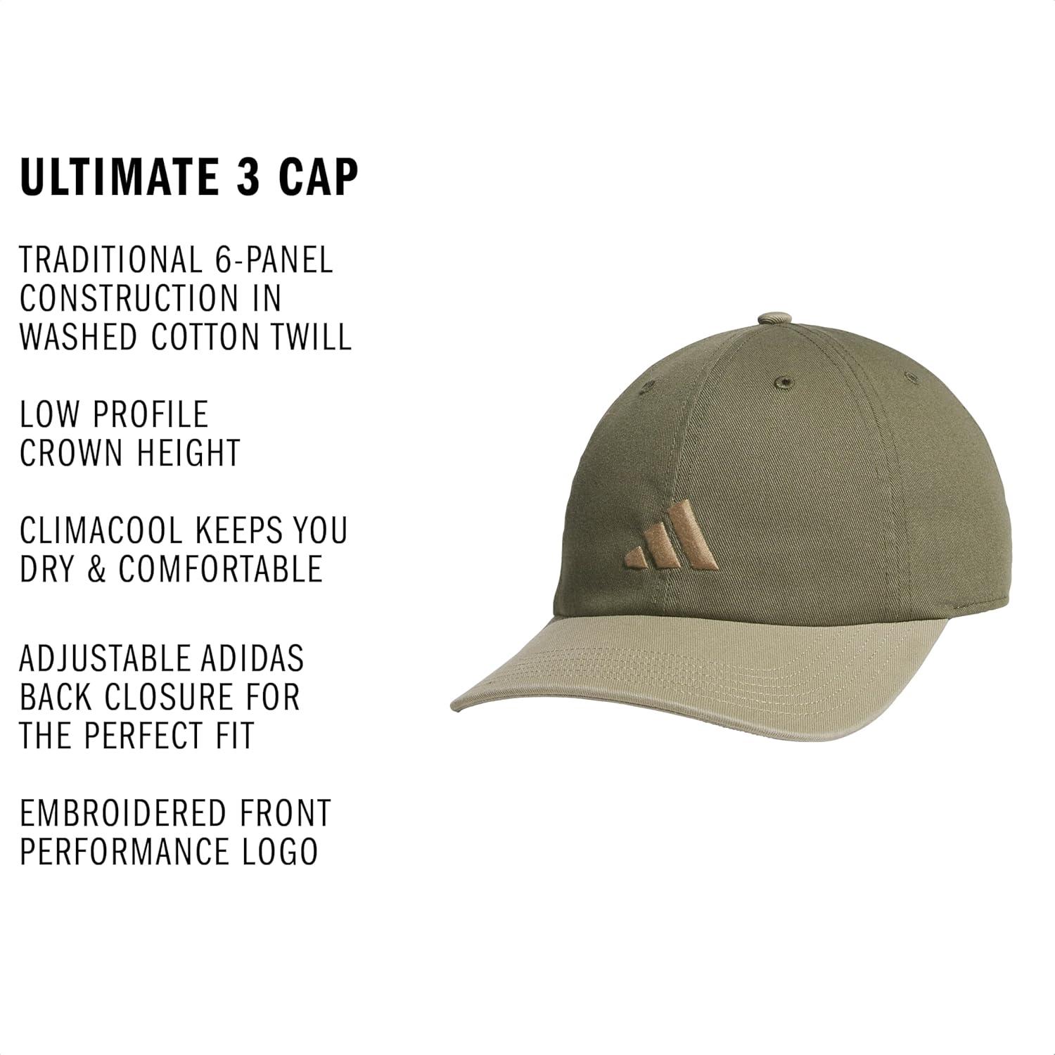 Adidas Mens Baseball Cap – Ultimate Adjustable Strapback Hat, Relaxed Fit, Cotton(Olive Strata Green/Blanch Cargo)