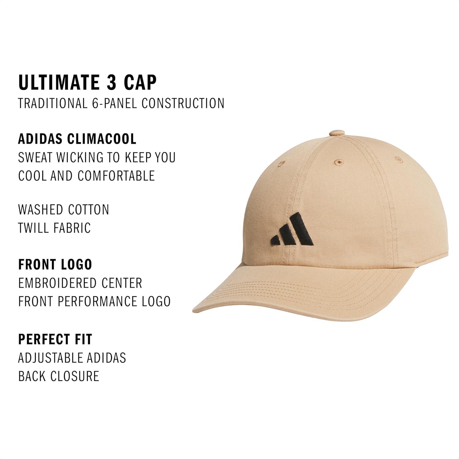Adidas Mens Baseball Cap – Ultimate Adjustable Strapback Hat, Relaxed Fit, Cotton(Warm Sandstone Beige/Black/3.0)