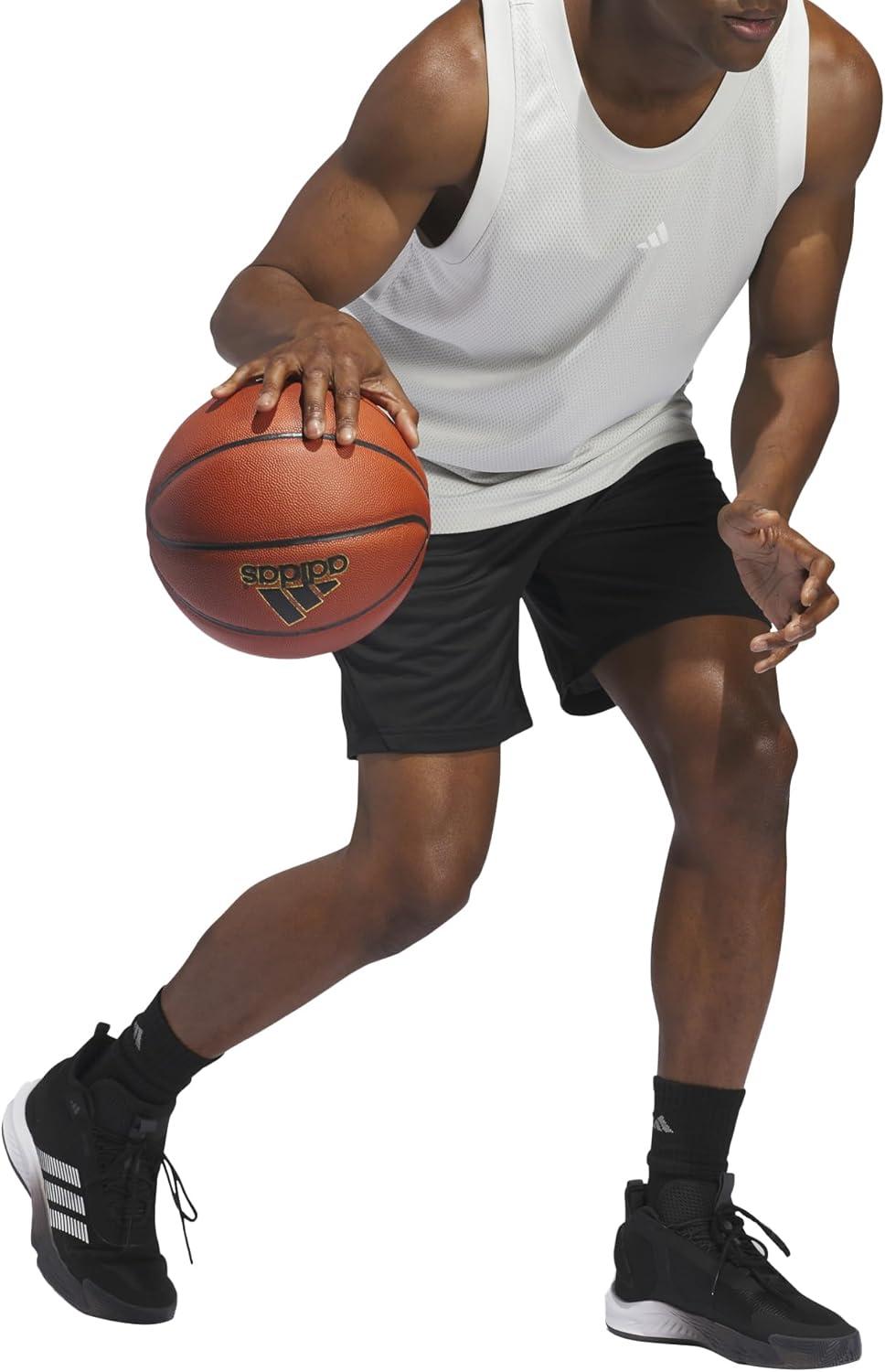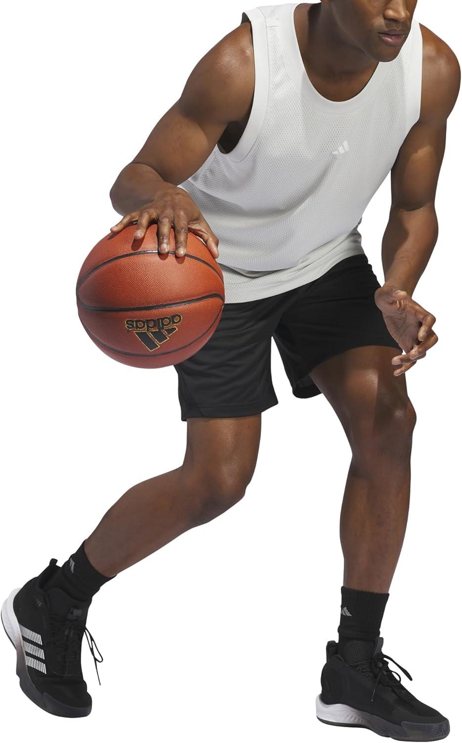 Dominate on and off the court in these men's adidas basketball shorts. Made from durable polyester knit fabric and moisture-managing AEROREADY, they'll keep you dry all game long while you're racking up buckets. Breathable mesh 3-Stripes add a sporty finish.