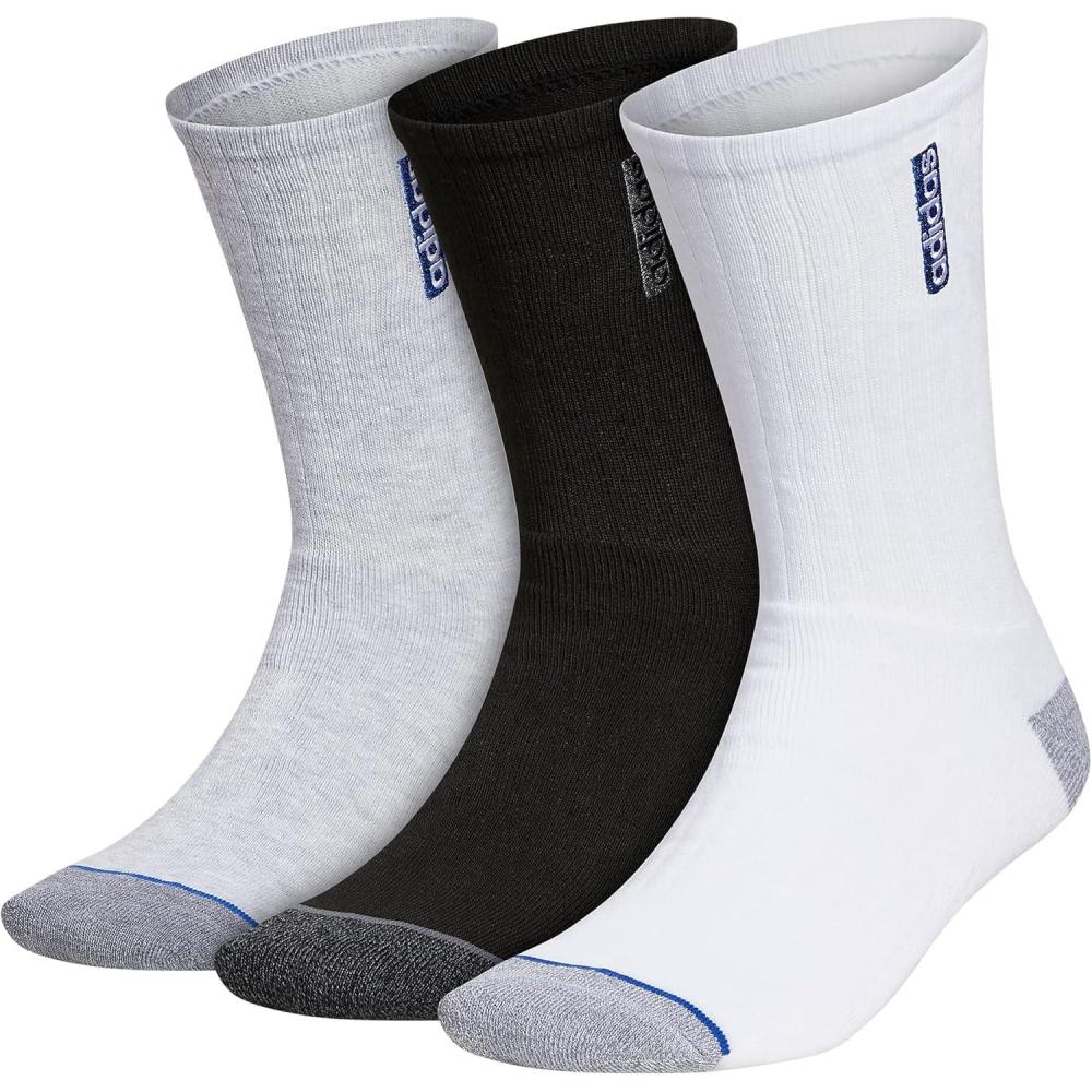 adidas mens Classic Cushioned 2.0 3-pack Crew Discontinued(White/Cool Light Heather/Tech Indigo Blue/Classic)