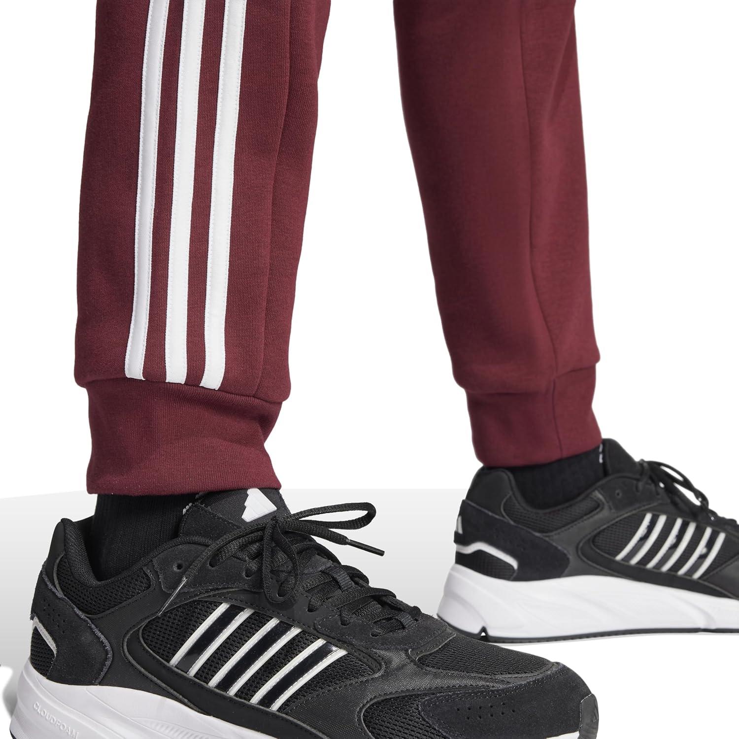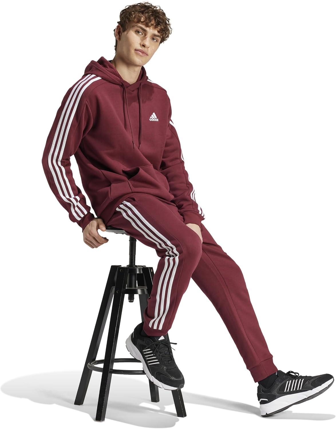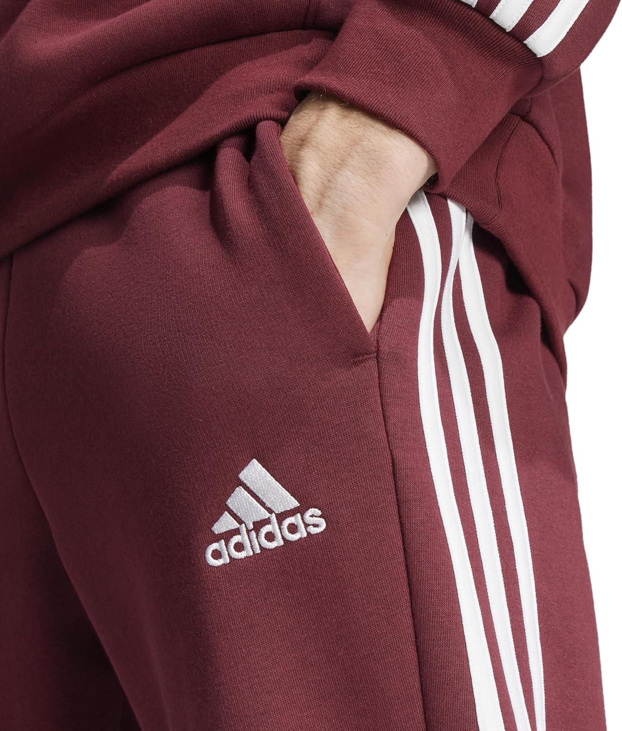 adidas Men’s Essentials 3-Stripes Fleece Tapered Cuff Pants(Shadow Red)