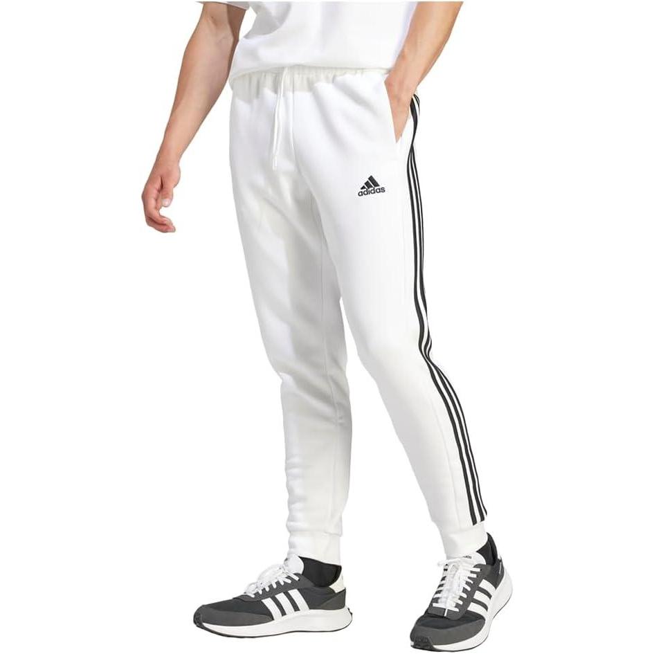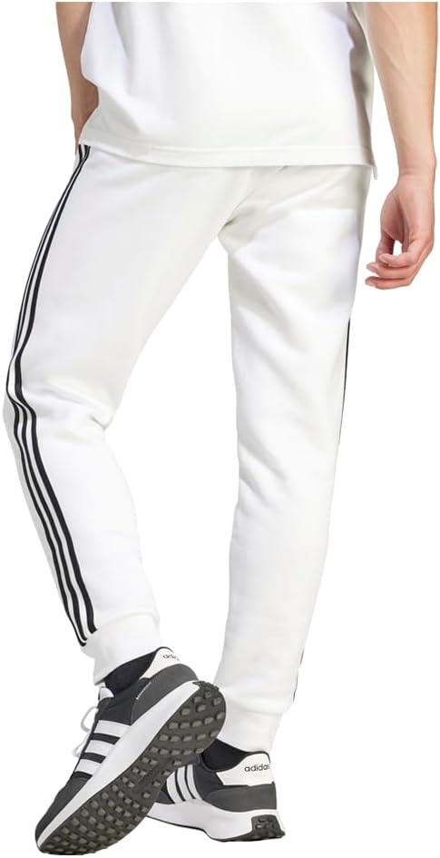 adidas Men’s Essentials 3-Stripes Fleece Tapered Cuff Pants(White/Black)