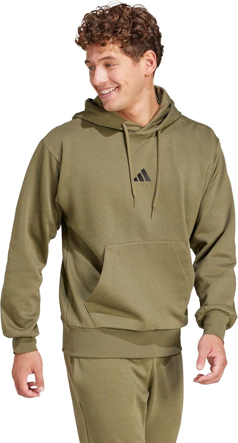 adidas mens Essentials Feelcozy Fleece Hoodie(Olive Strata/Black)