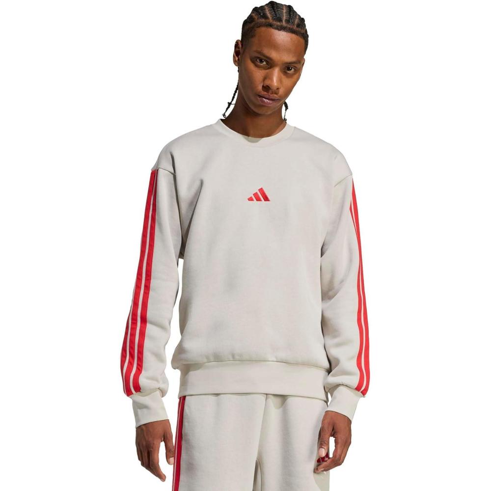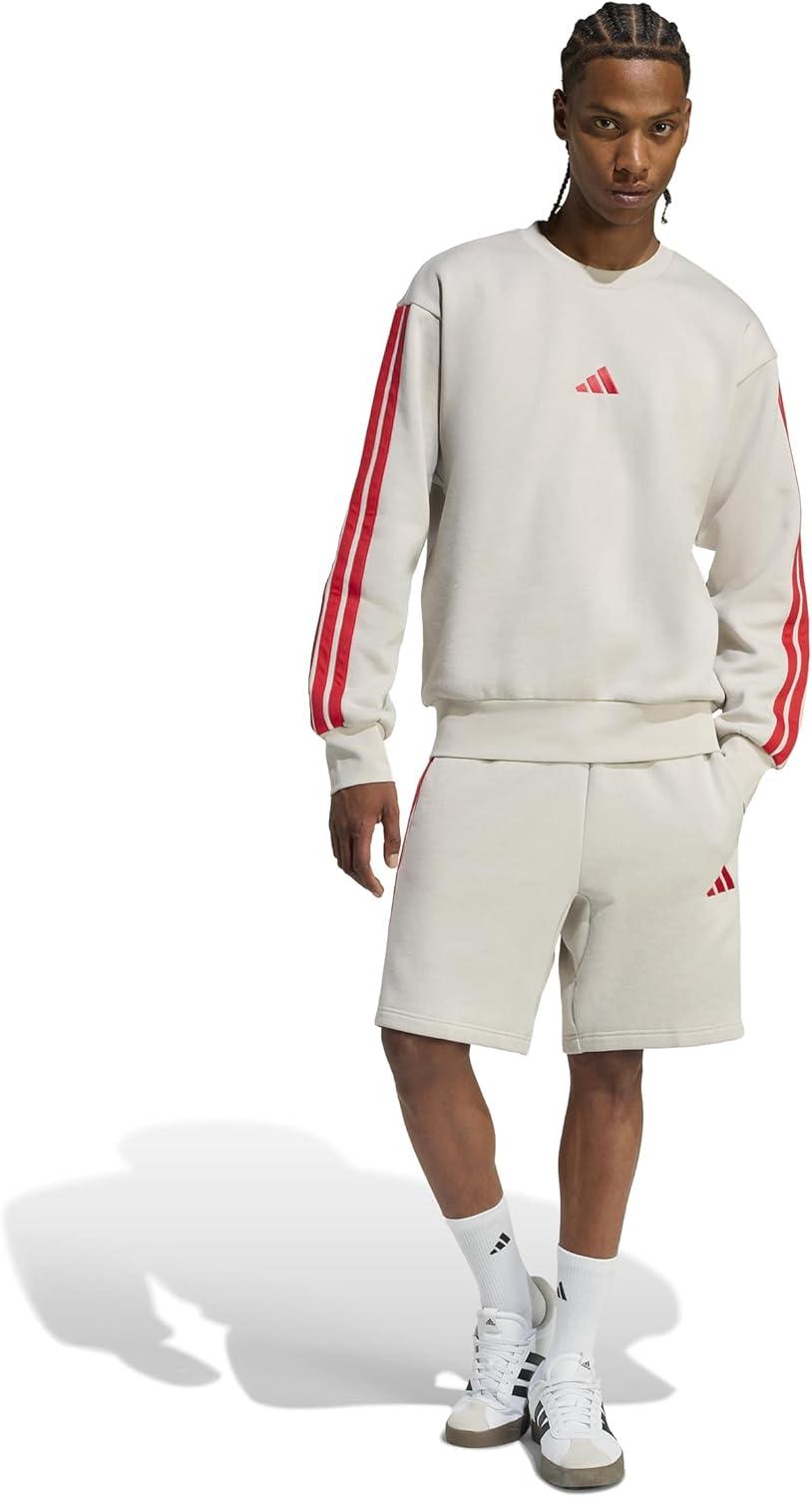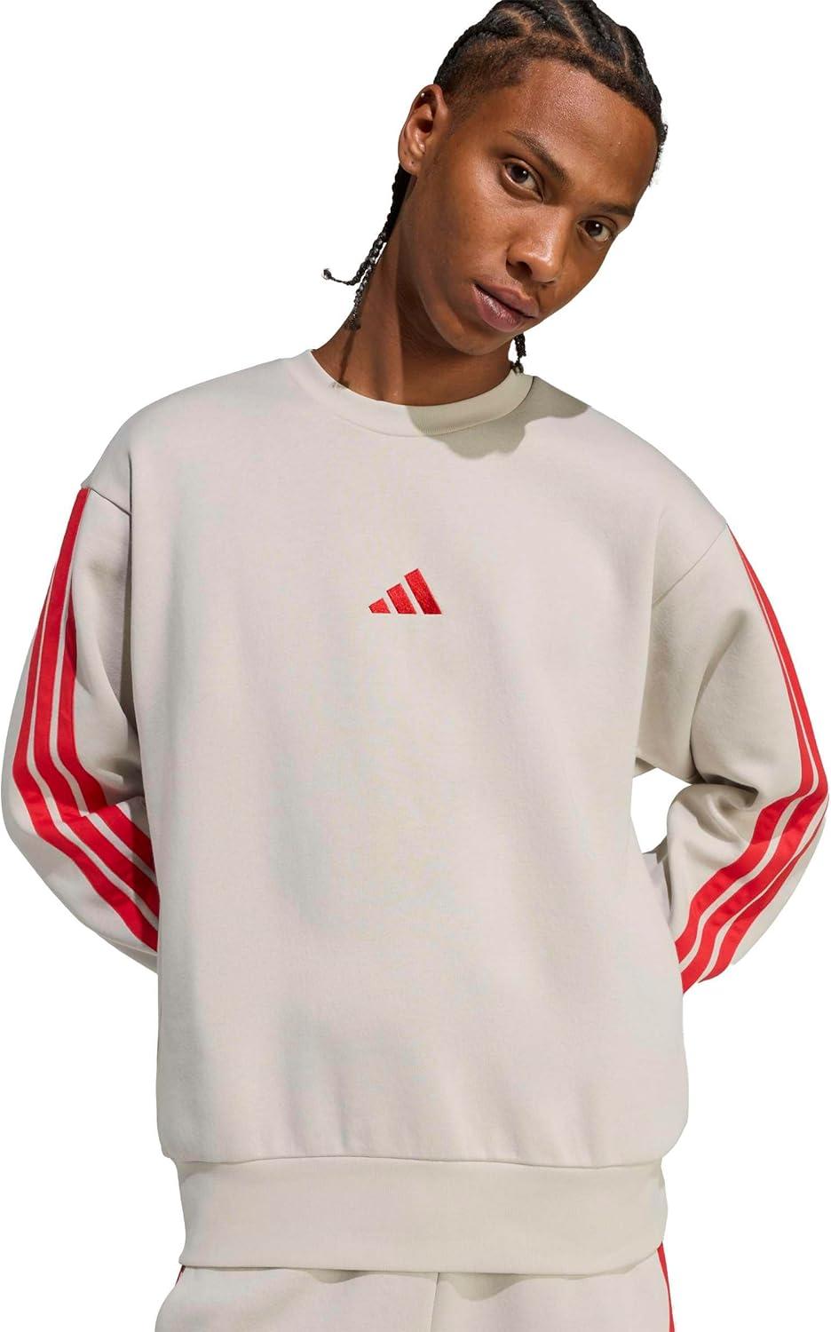 adidas mens Essentials Fleece 3-stripes Sweatshirt(Wonder Alumina/Pure Ruby)