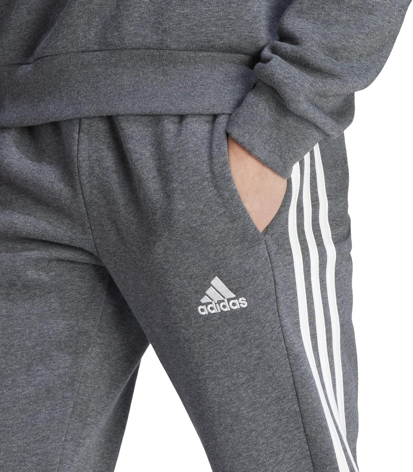 adidas Men’s Essentials Fleece Tapered Cuff 3-Stripes Pants(Medium Grey Heather/Black)