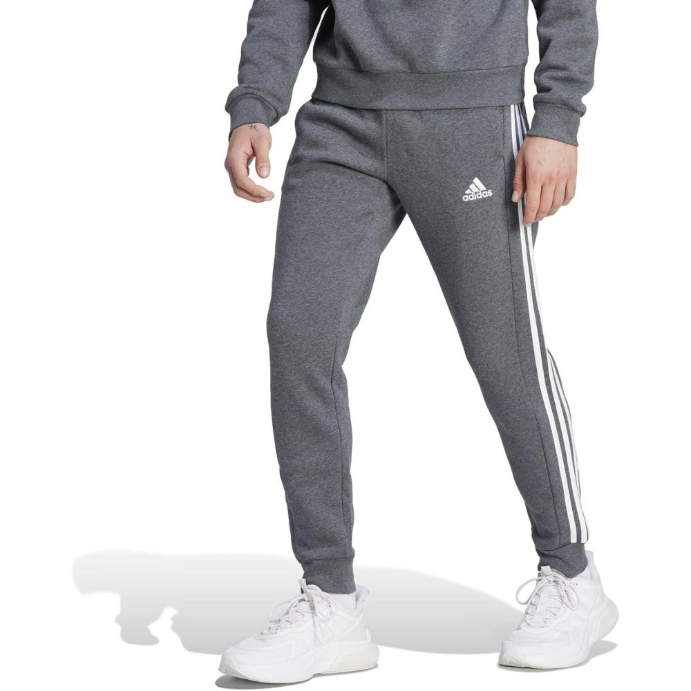 adidas Men’s Essentials Fleece Tapered Cuff 3-Stripes Pants(Dark Grey Heather)