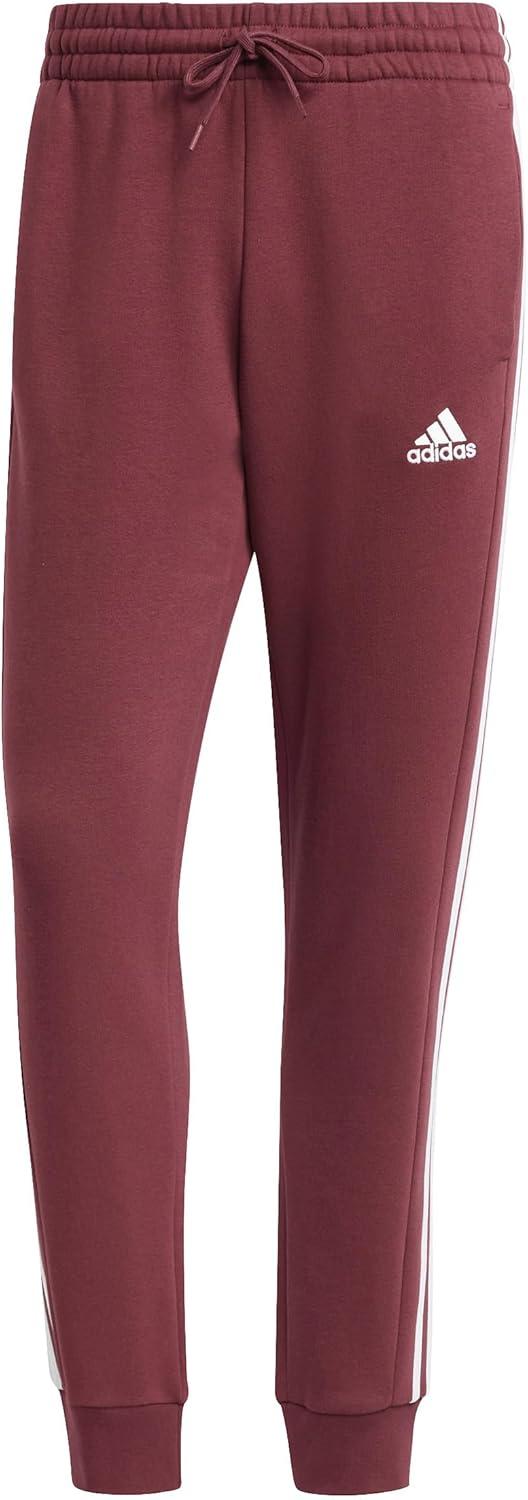 adidas Men’s Essentials Fleece Tapered Cuff 3-Stripes Pants(Shadow Red)