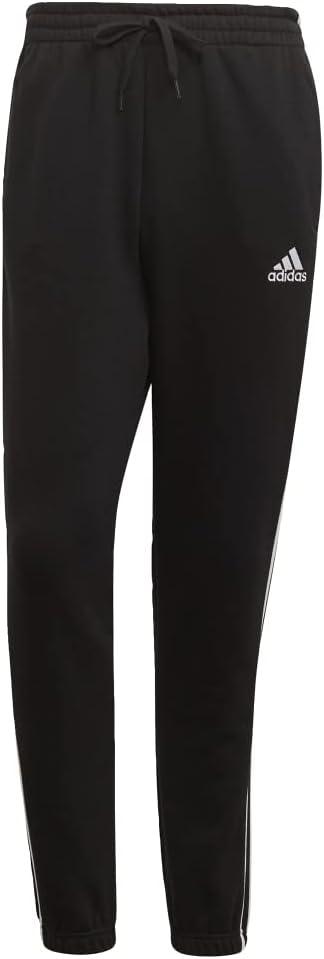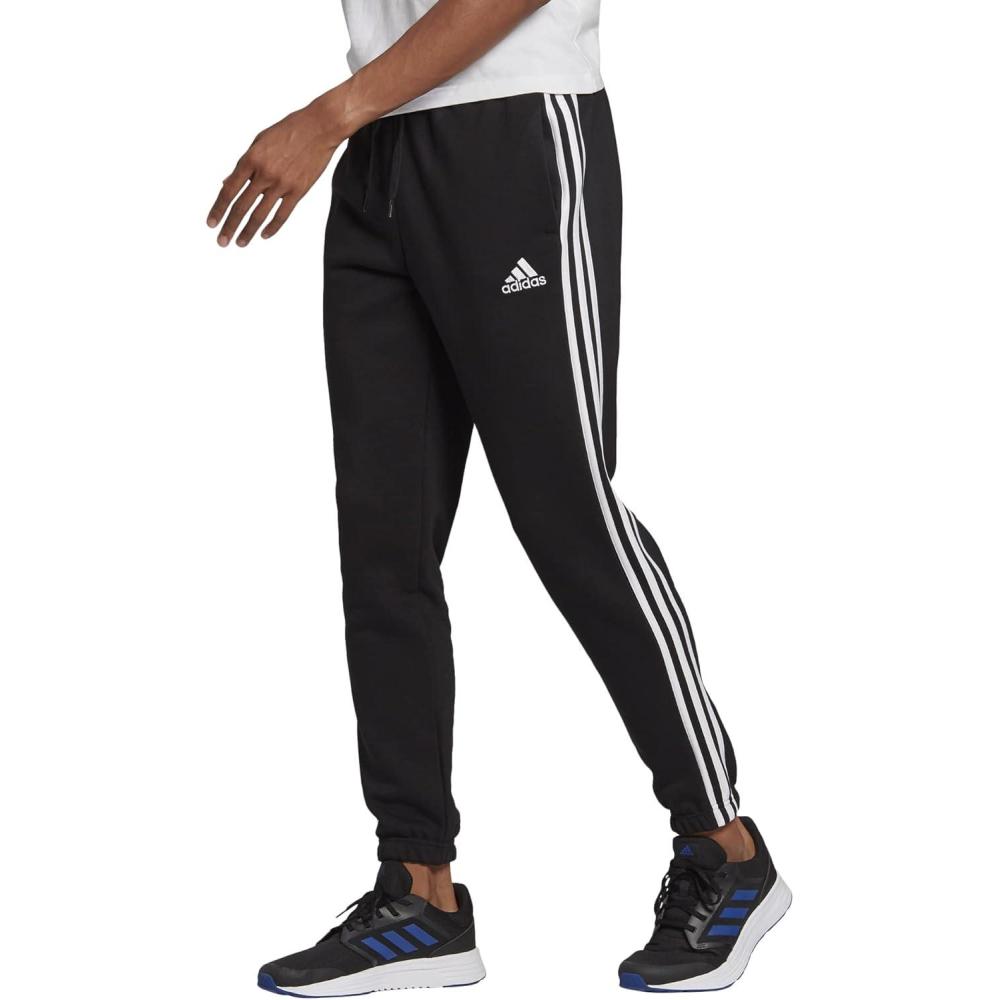 Casual comfort with a snug fit. These men's adidas pants are made of cozy fleece and feature a tapered leg and an elastic cuff to help you move through your day distraction free. Classic-look 3-Stripes provide a signature touch, while side pockets can hold whatever you need for your day.
