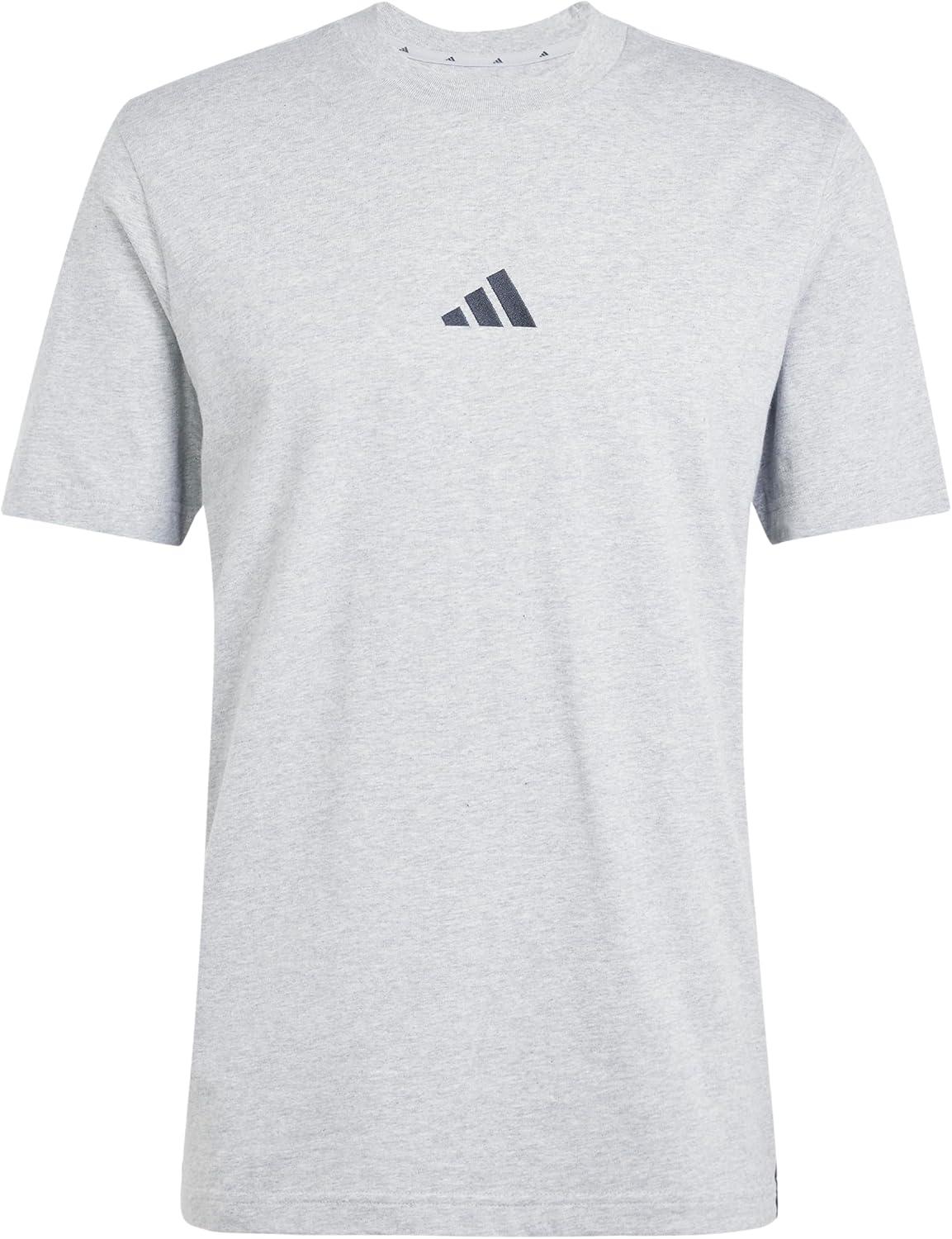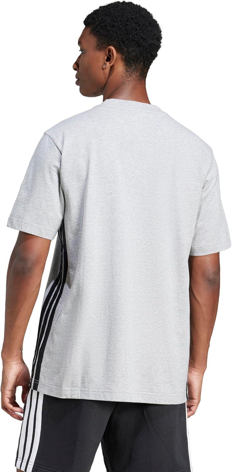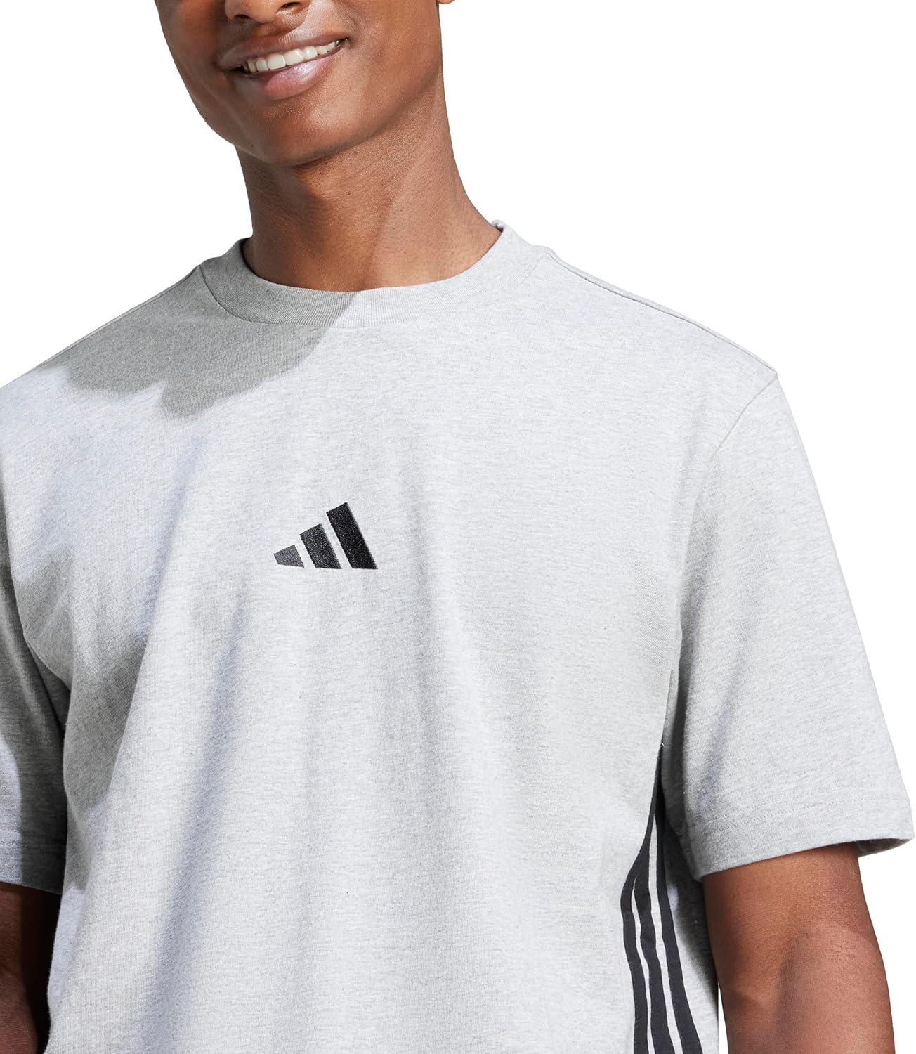 Adidas Mens Essentials Single Jersey 3-Stripes T-Shirt(Medium Grey Heather/Black)