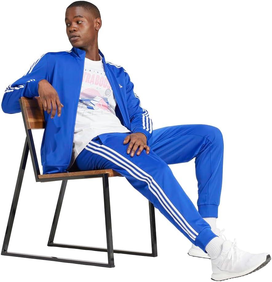 adidas Men’s Essentials Warm-Up Tricot 3-Stripes Tapered Track Pants(Semi Lucid Blue/White)