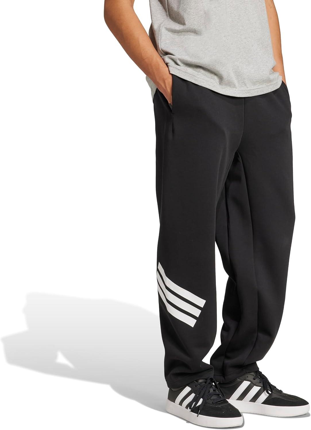 adidas Men’s Future Icon 3-Stripes Open Hem Pants(Black)