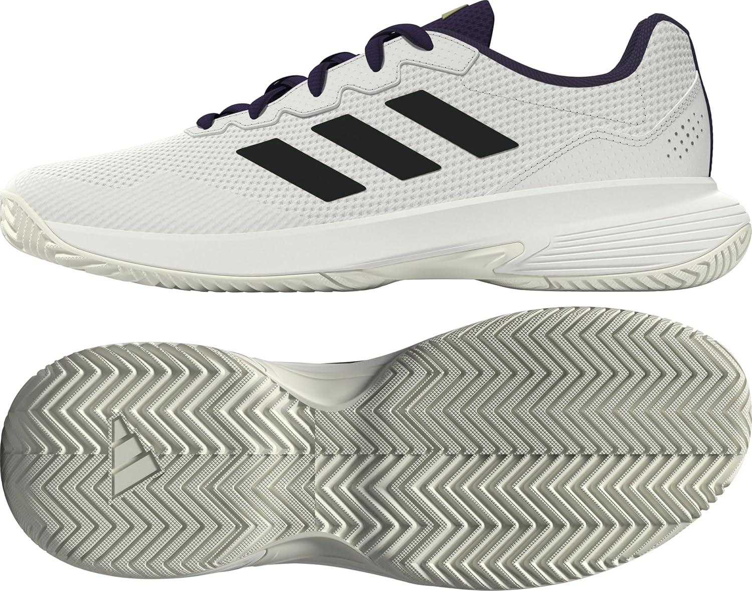 adidas Men's Gamecourt 2.0 Tennis Shoe(White/Black/Aurora Plum)