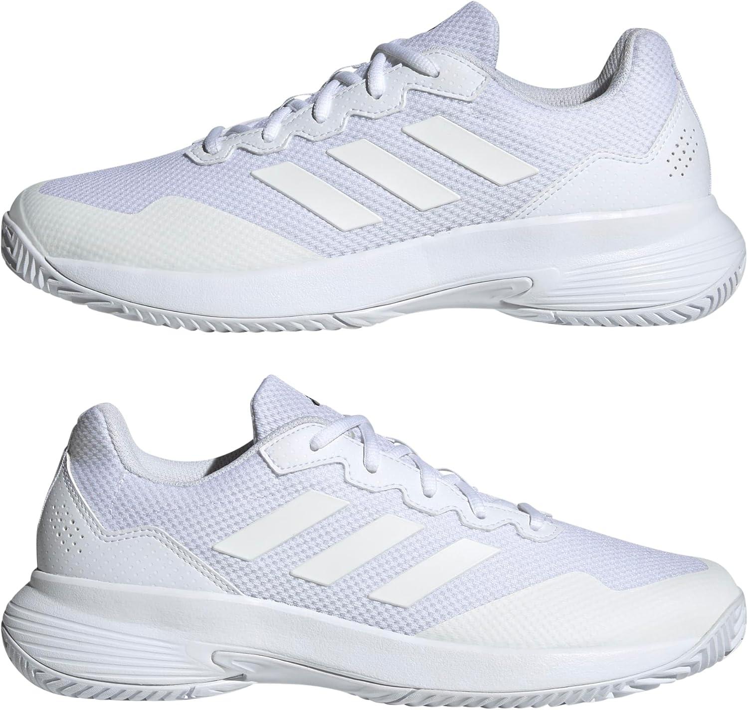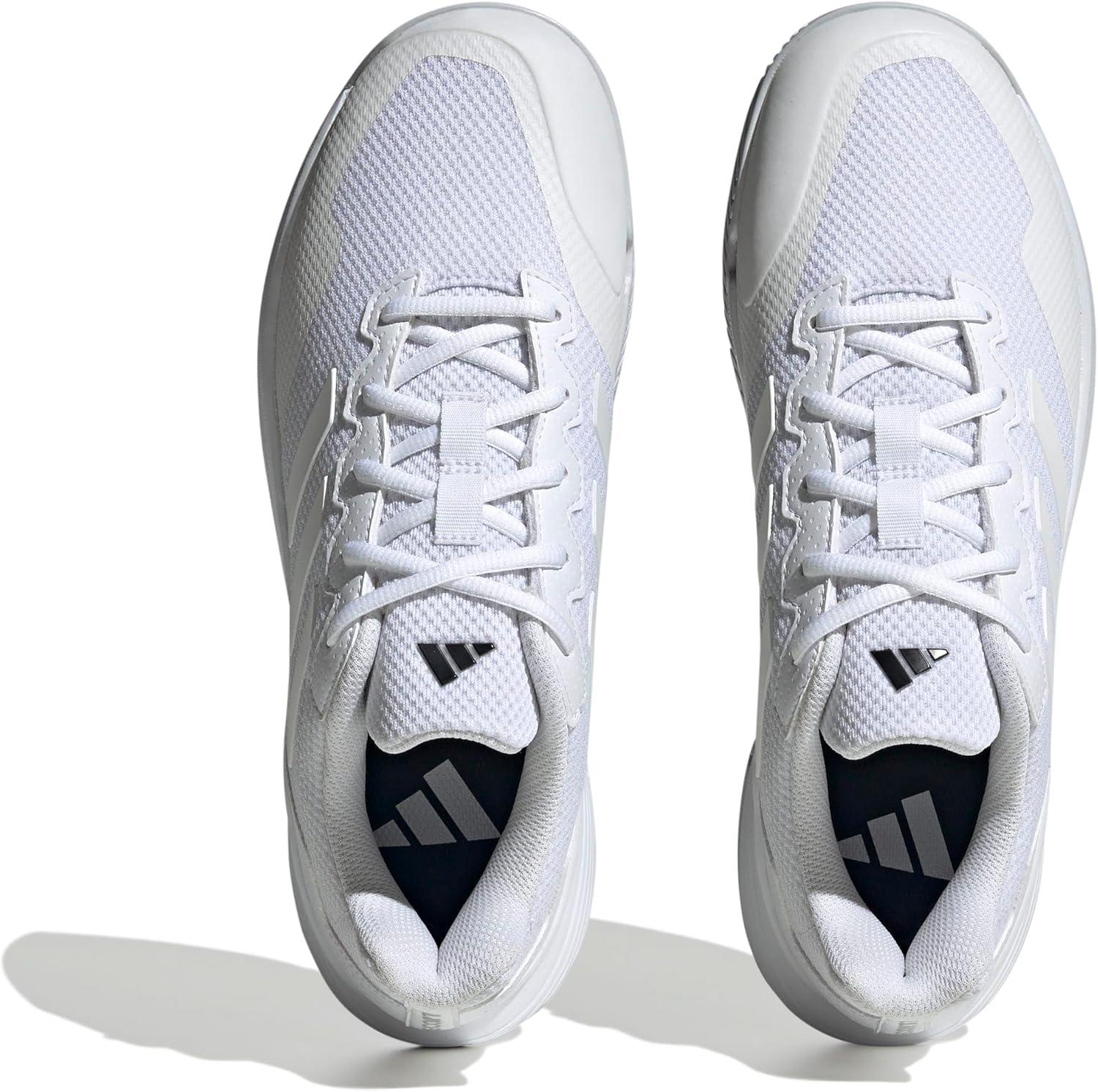 Perfect your game in these men's adidas tennis shoes. They're made with a breathable, flexible mesh upper to keep you cool and competitive. Padding in the heel locks you in for long rallies, and the durable Adiwear outsole lets you clock up the hours on court as you hone your game.