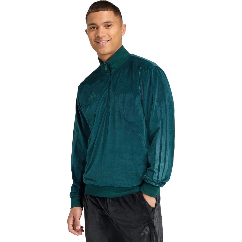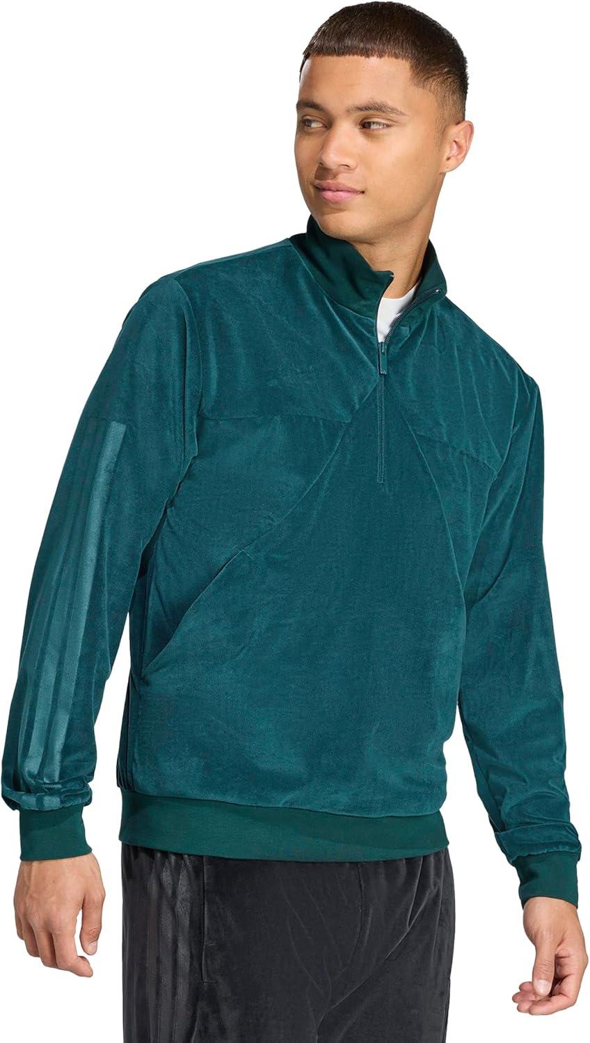 adidas mens House of Tiro Velour Half-zip Track Top(Aurora Ivy)