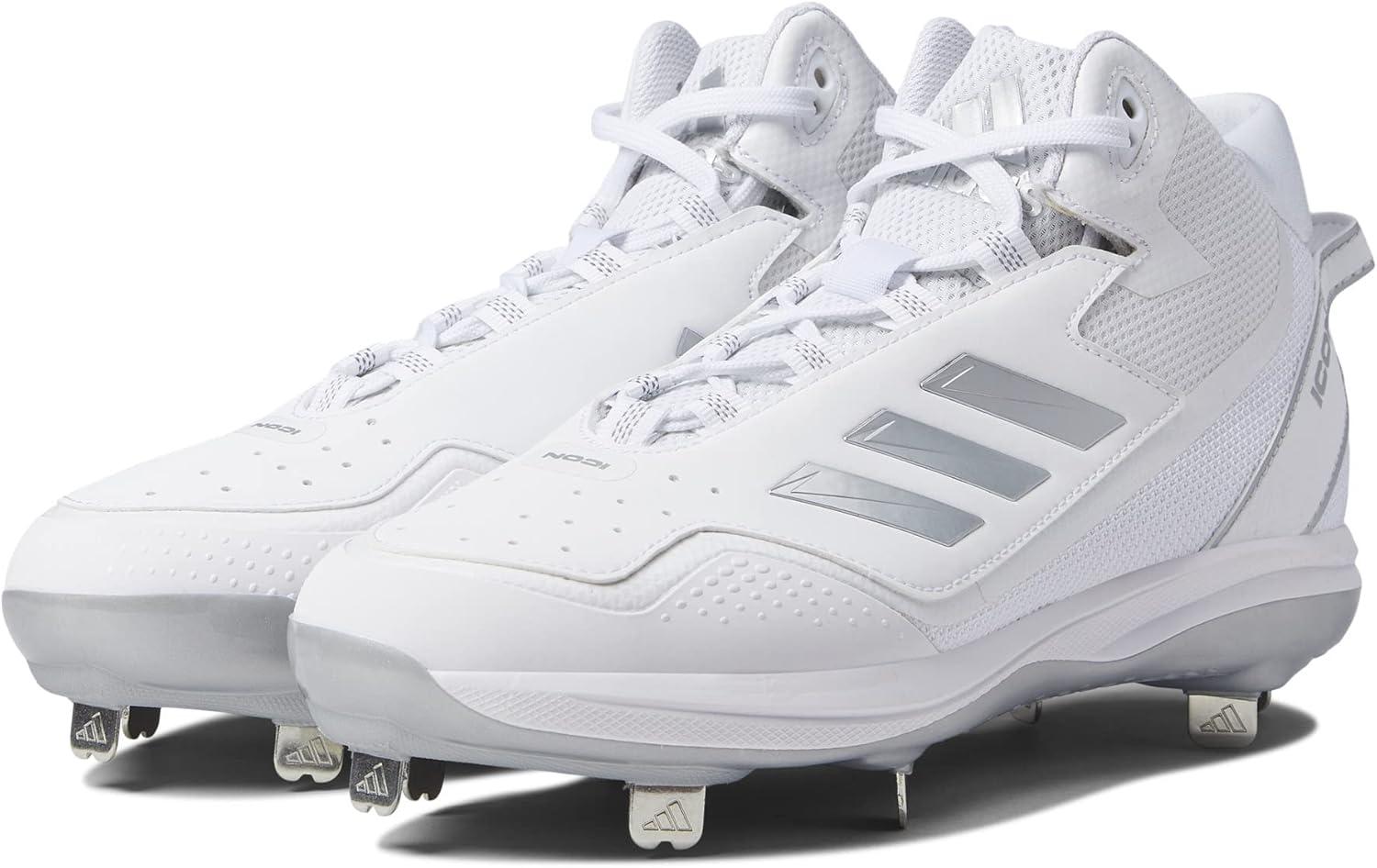 adidas Men's Icon 7 Mid Baseball Shoes(White/Silver Metallic/Silver Metallic)
