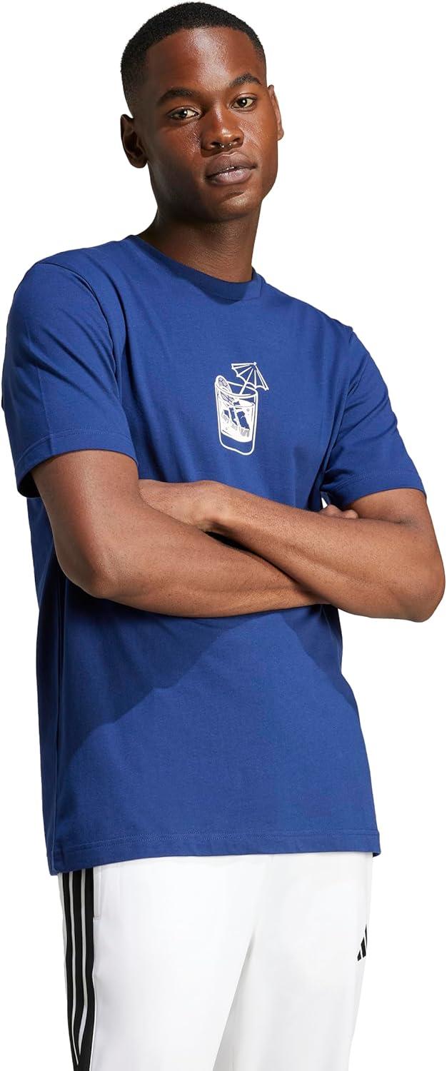 Feel free to indulge yourself in this adidas graphic tee for men. Built in soft cotton with a classic ribbed crewneck, it keeps you feeling good so you can focus on the day's adventures. A mouth-watering graphic nods to the delicious treats of summer.