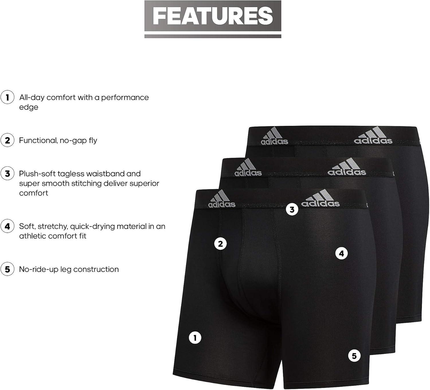 adidas Men’s Microfiber Boxer Briefs Underwear (Multipack) Athletic Stretch-Fit(Black/Black)