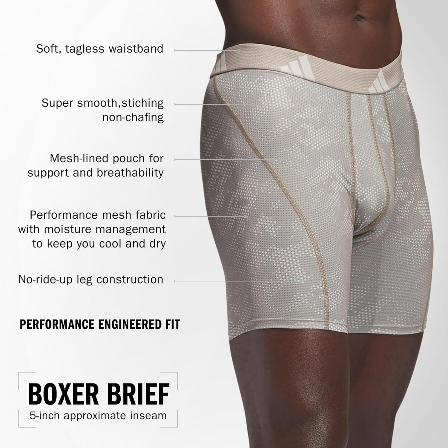 This cool and comfortable mens boxer briefs with pouch is constructed with performance mesh fabric for maximum ventilation. The engineered fit of these adidas boxer briefs men features stay-put legs, smooth stitching, and a breathable mesh-lined pouch. These athletic boxers for men are designed for those seeking mens mesh underwear that offers both function and comfort. If you're searching for long boxer briefs for men that stay in place, this pair is suitable. Available in a mens boxer briefs underwear pack, this men's underwear with pouch offers a blend of support and durability, making it suitable for active lifestyles.