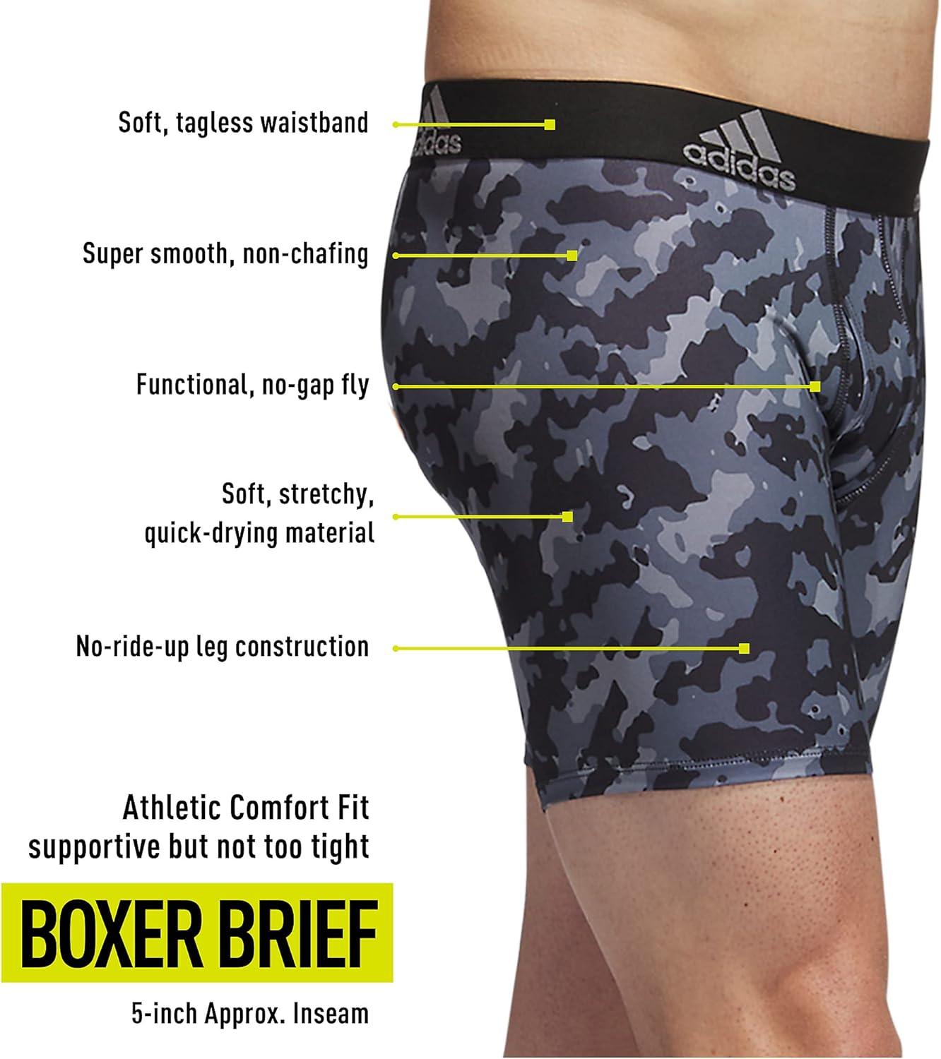 The ultimate in everyday comfort with a performance edge, adidas Performance Boxer Briefs feature our proven soft, stretchy moisture-wicking fabric, an easy fit through the pouch, functional no-gap fly, soft stitching, tagless waistband and no-ride-up construction.