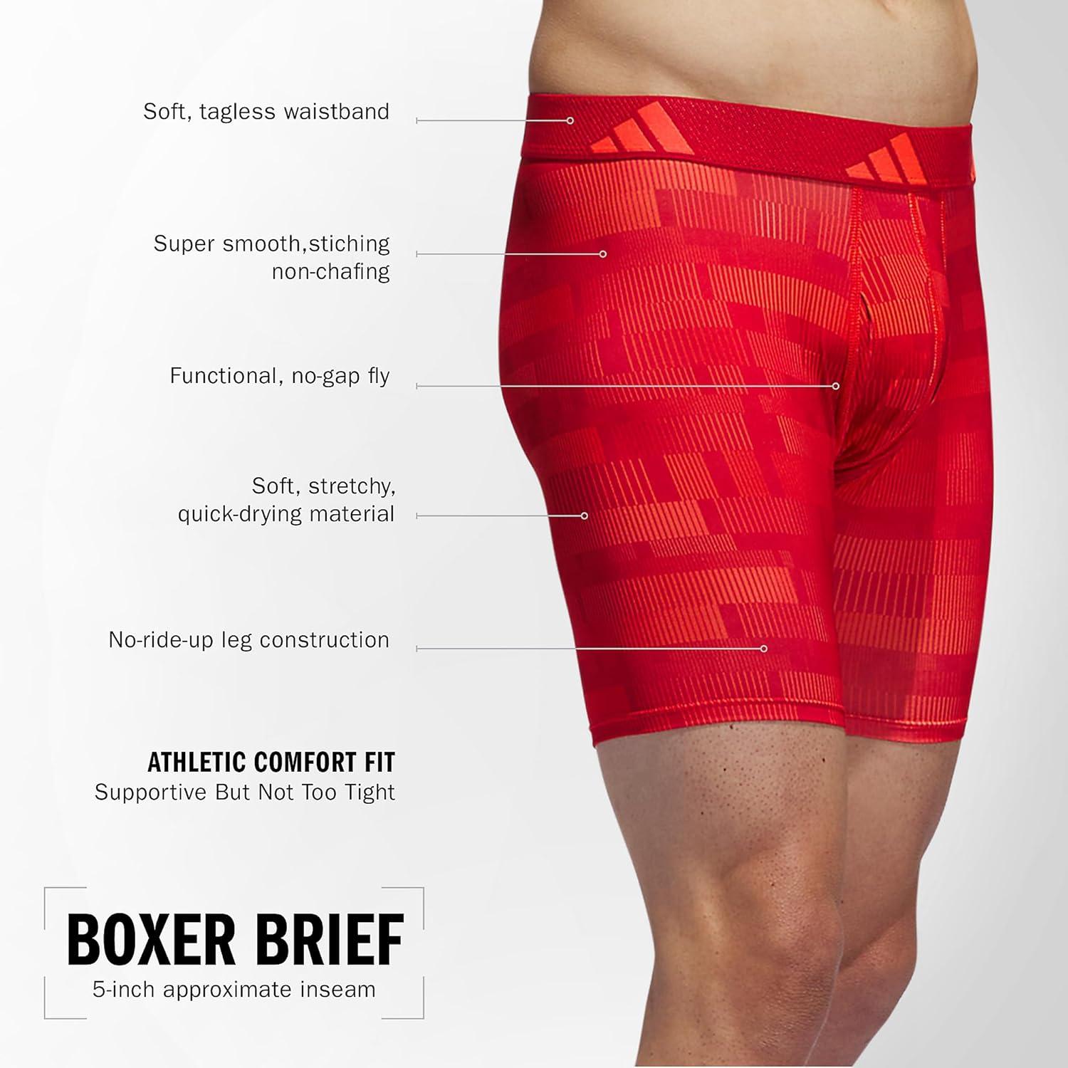The ultimate in everyday comfort with a performance edge, adidas Performance Boxer Briefs feature our proven soft, stretchy moisture-wicking fabric, an easy fit through the pouch, functional no-gap fly, soft stitching, tagless waistband and no-ride-up construction.