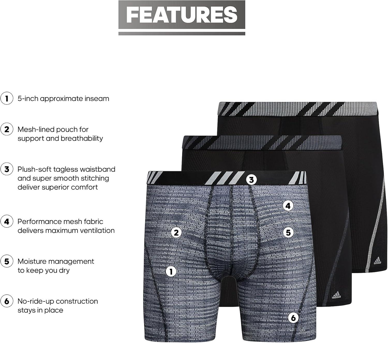 adidas Mens Sport Performance Mesh Boxer Brief Underwear (3-Pack) DISCONTINUED(Illum Black/Onix Grey/Clear Grey)