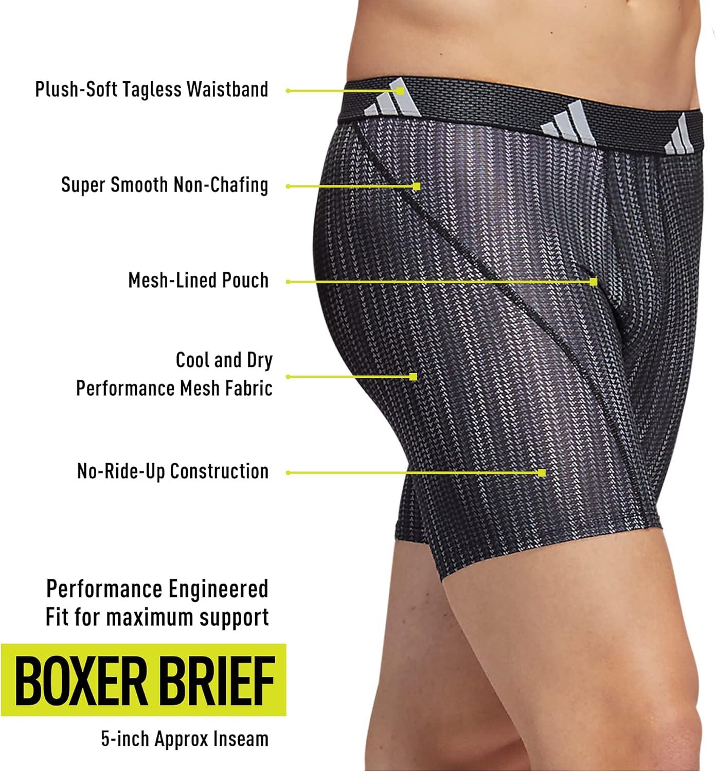 adidas Mens Sport Performance Mesh Boxer Brief Underwear (3-Pack) DISCONTINUED(Performance Wave Black/Black/Black)