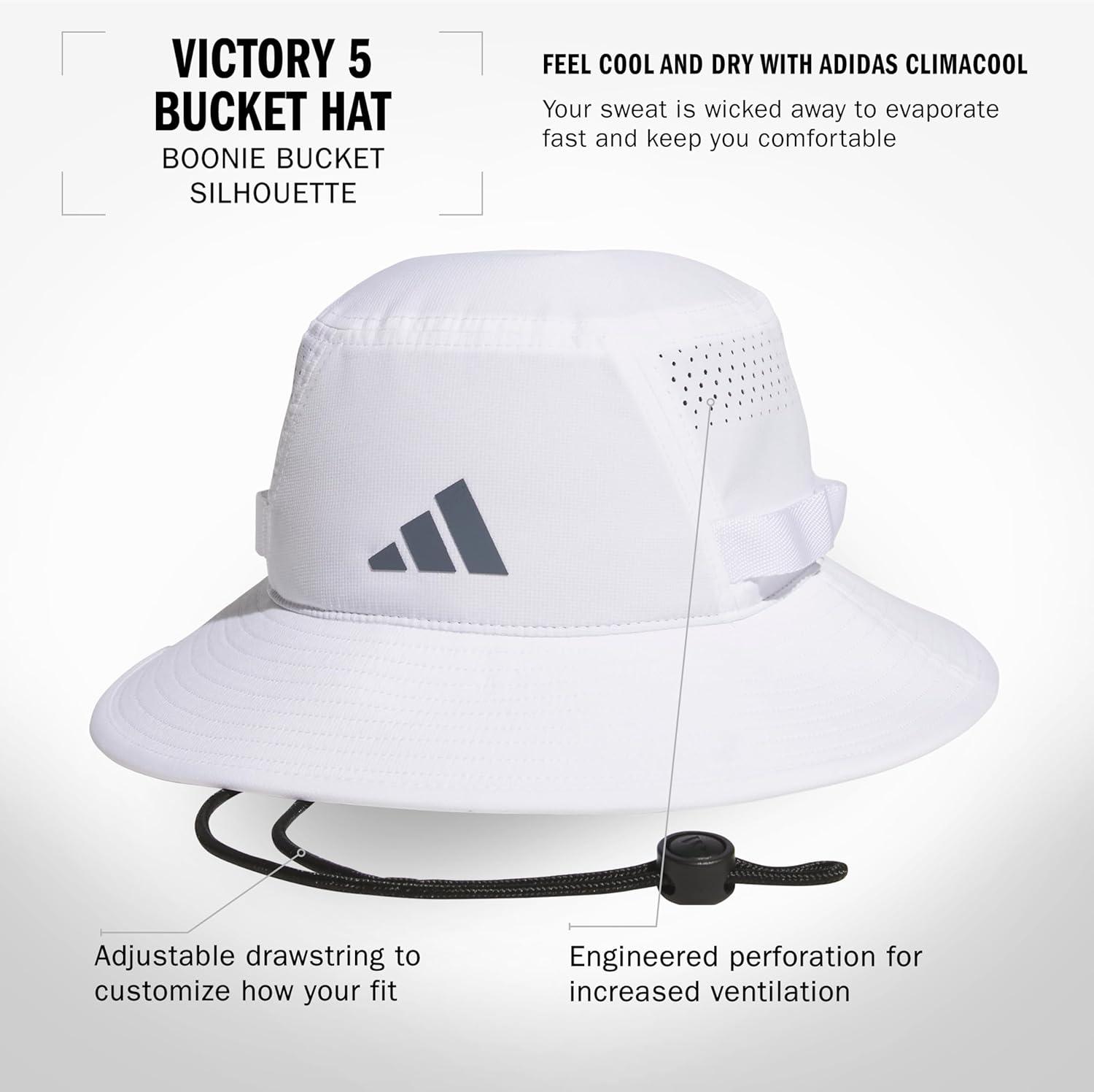 Keep covered on sunny days in this men's adidas bucket hat. Engineered perforations keep the air flowing to help you stay cool and dry. An adjustable chin strap lets you personalize the fit.
