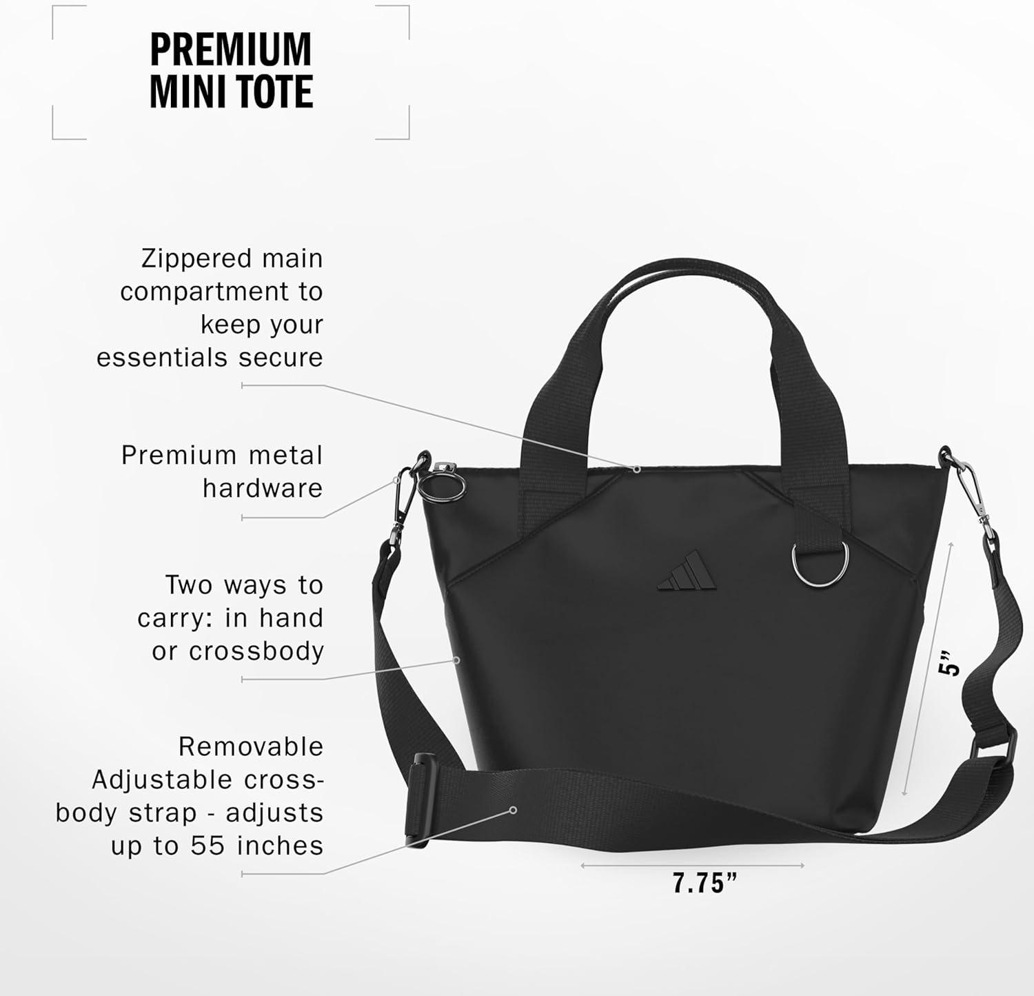 adidas Mini Tote for Women, Small Crossbody Bag(Premium/Black)