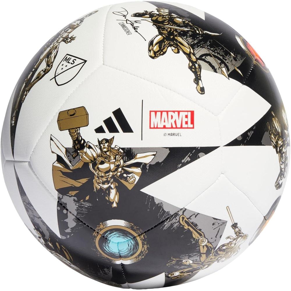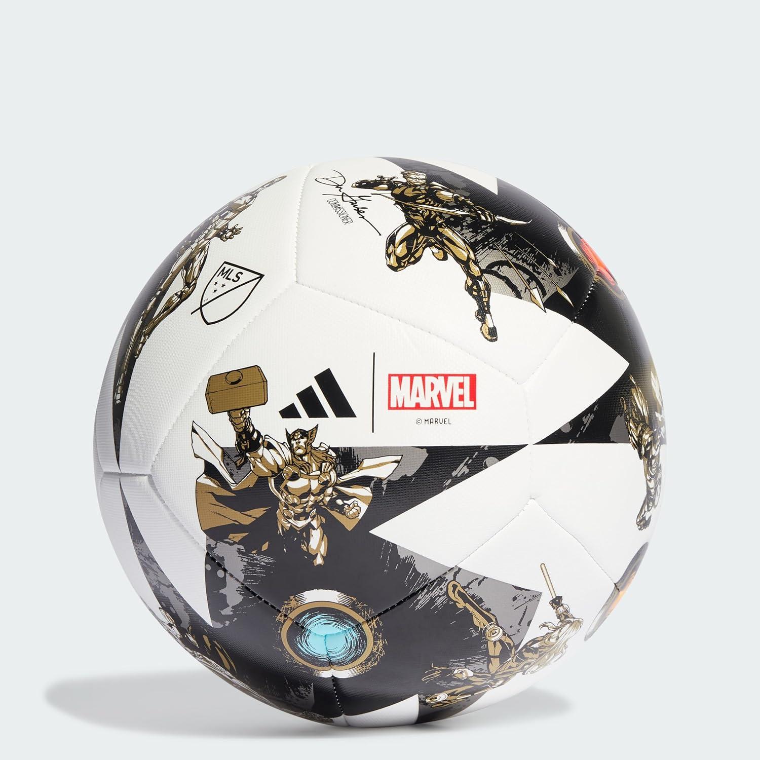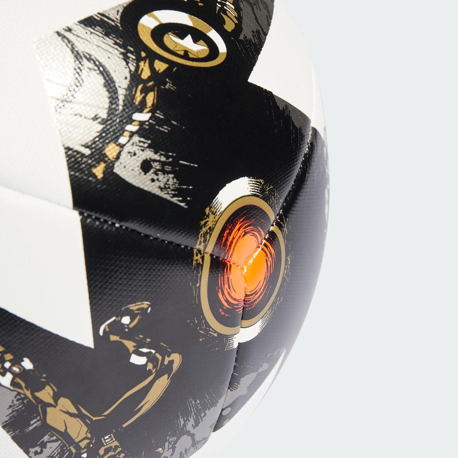 adidas MLS 2023 All Star Game Ball - Marvel's Avengers-Inspired Graphics, MLS Printed Logos, Inflation Required (Training, 5), BLACK/WHITE/IRON MET./GOLD MET