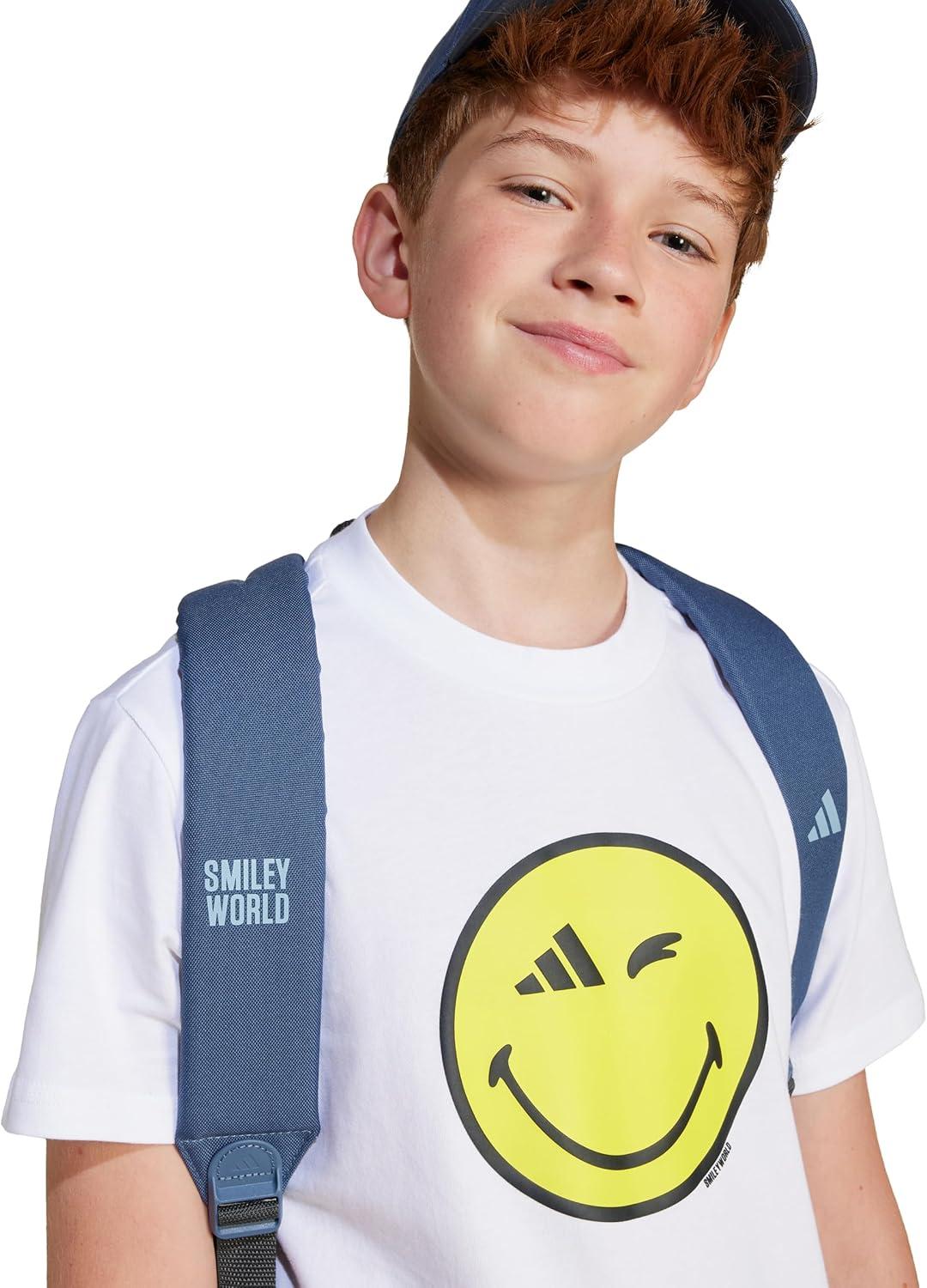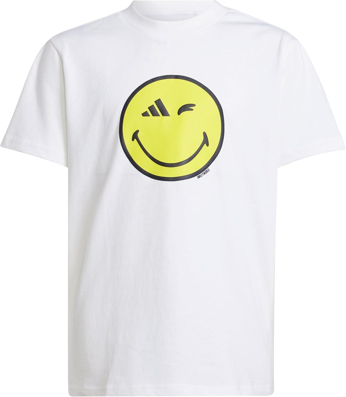 adidas Originals Boys’ Smiley World Graphics T-Shirt(White/Carbon/Bright Yellow/Black)